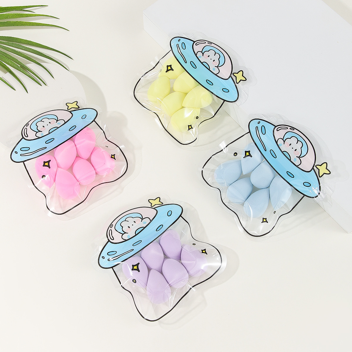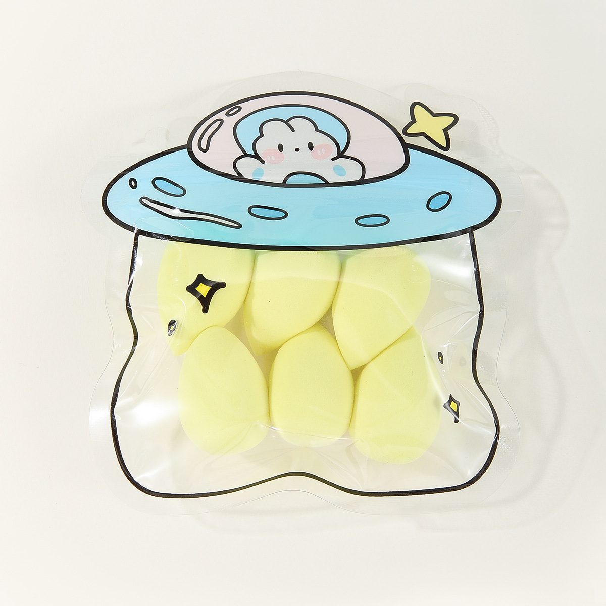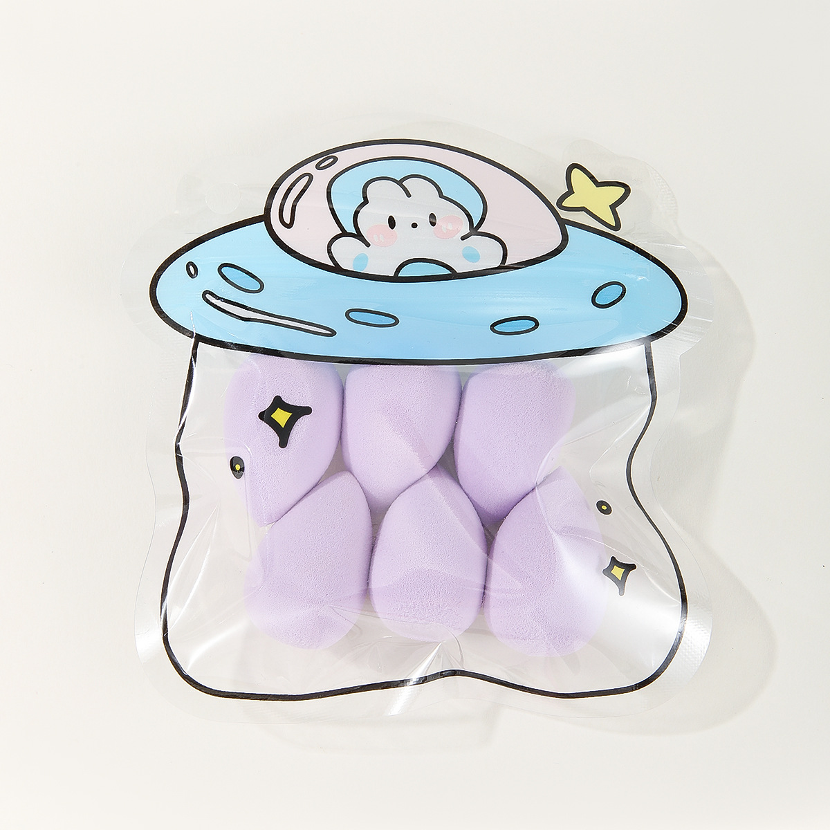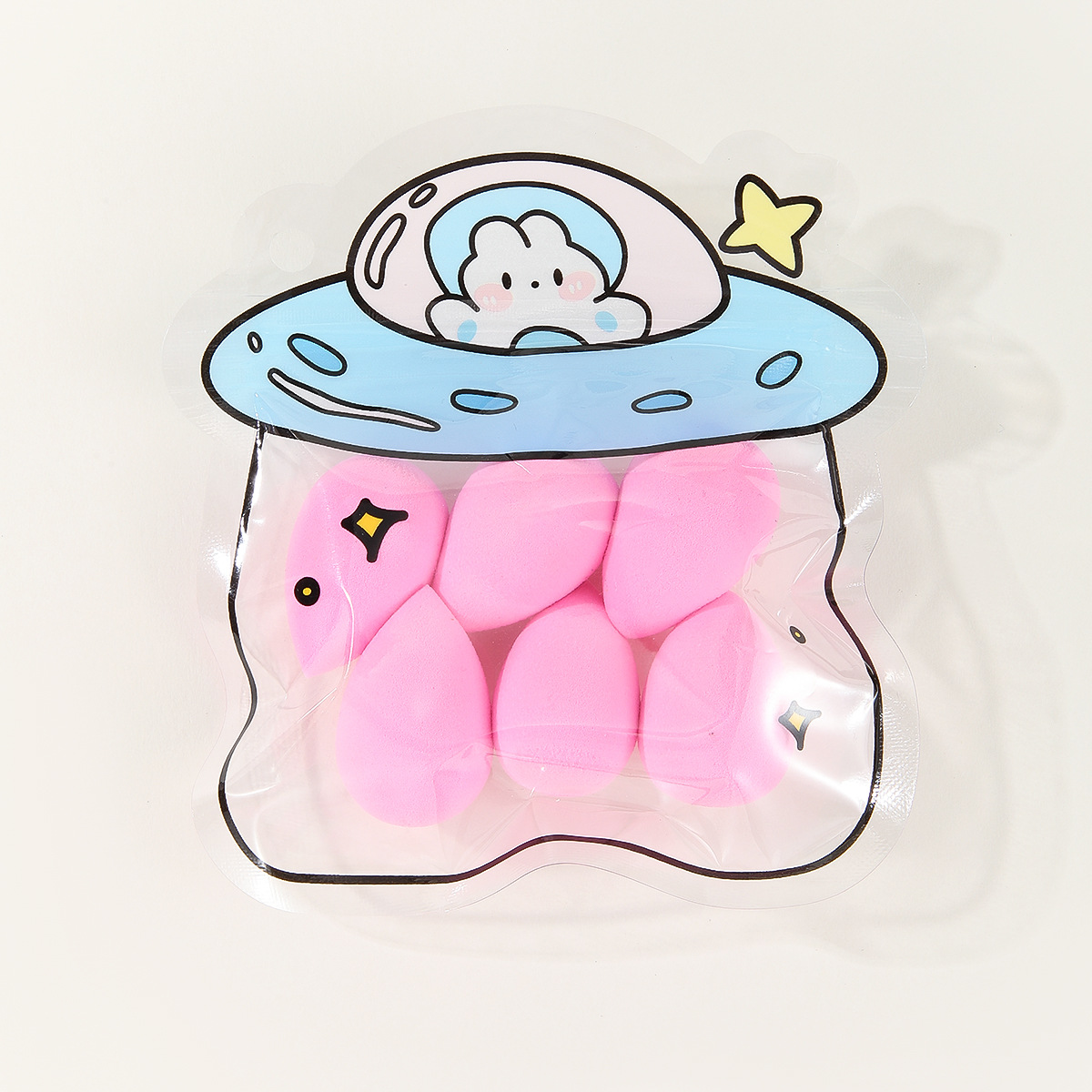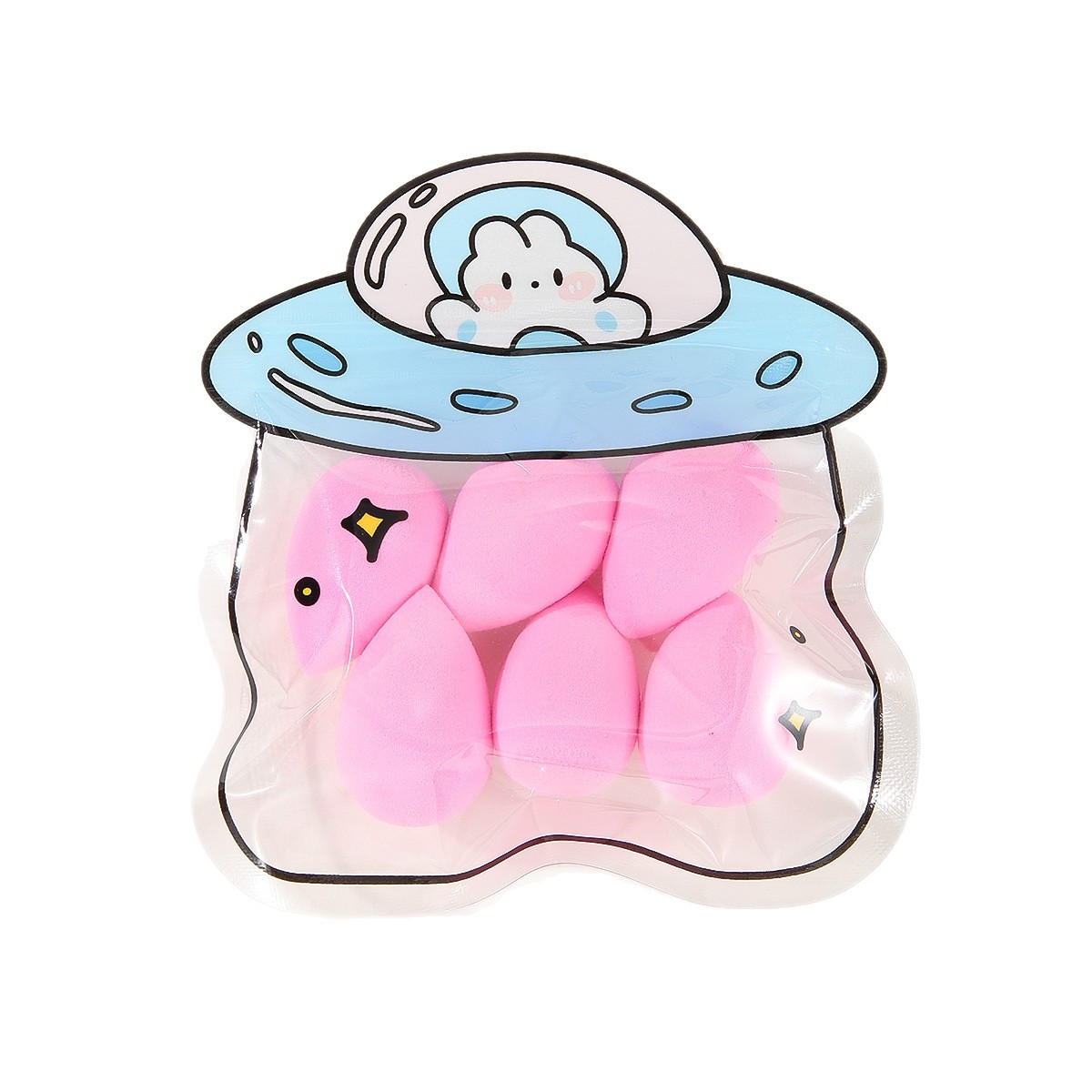 美妆蛋卡通自封袋6个装柔软粉扑干湿两用遇水变大粉扑美妆工具