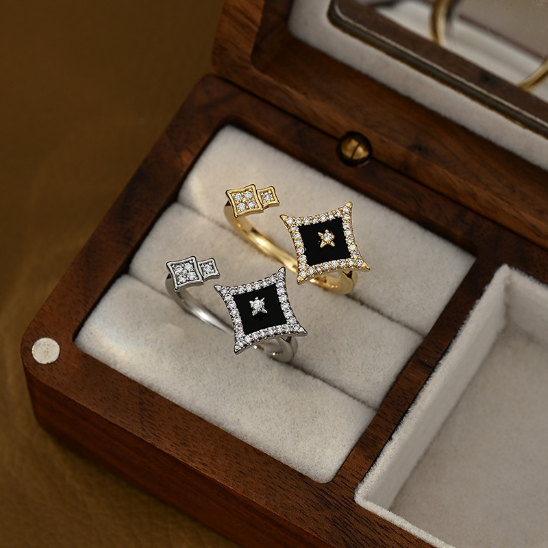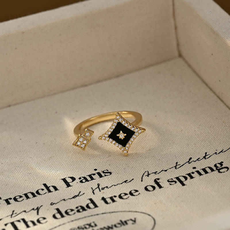 2025新款真金电镀微镶锆石星星戒指女简约设计百搭可调节指环戒圈 English | 投诉
