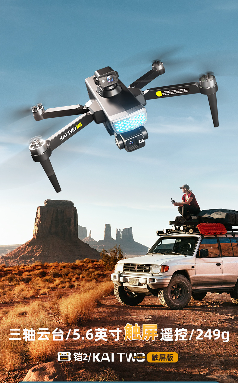 5.6英寸触摸屏幕实时图传、三轴机械云台,4K像素,360°全方位激光避障GPS定位+光流定位双模式,无刷电机, 7级抗风, 失控返航,低电返航,一键返航,5g高清图传,冲天模式,渐远模式,全景拍摄智能跟随,画面50倍变焦,兴趣点环绕