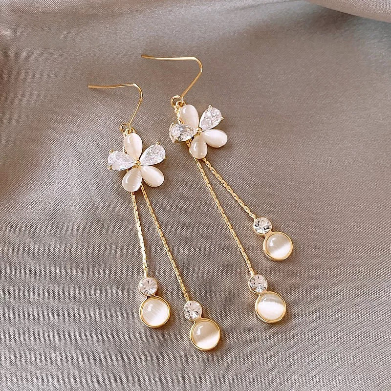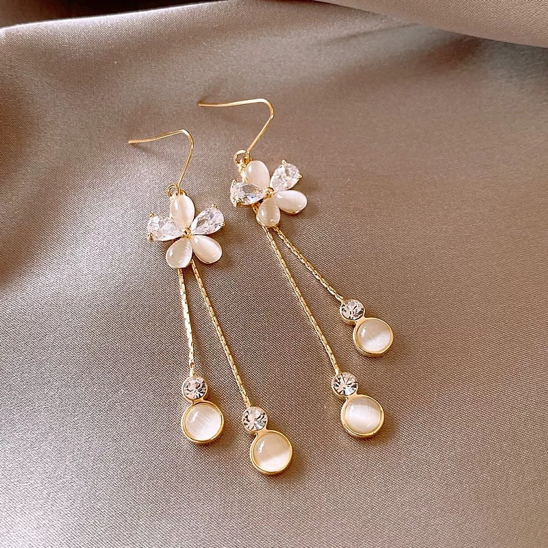百搭优雅气质款小花长款耳钉耳坠气质奢华百搭耳饰品厂家直销批发