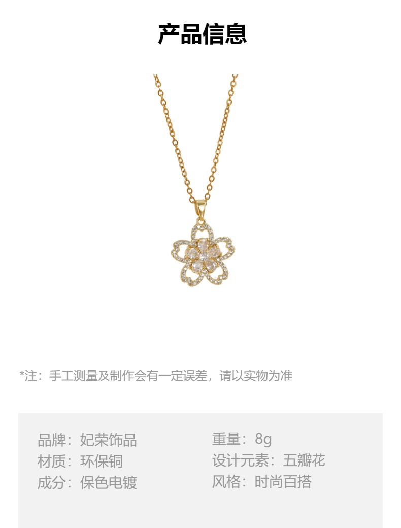 新款时尚轻奢清新甜美镶嵌锆石花朵项链女气质百搭高级感饰品批发 投诉