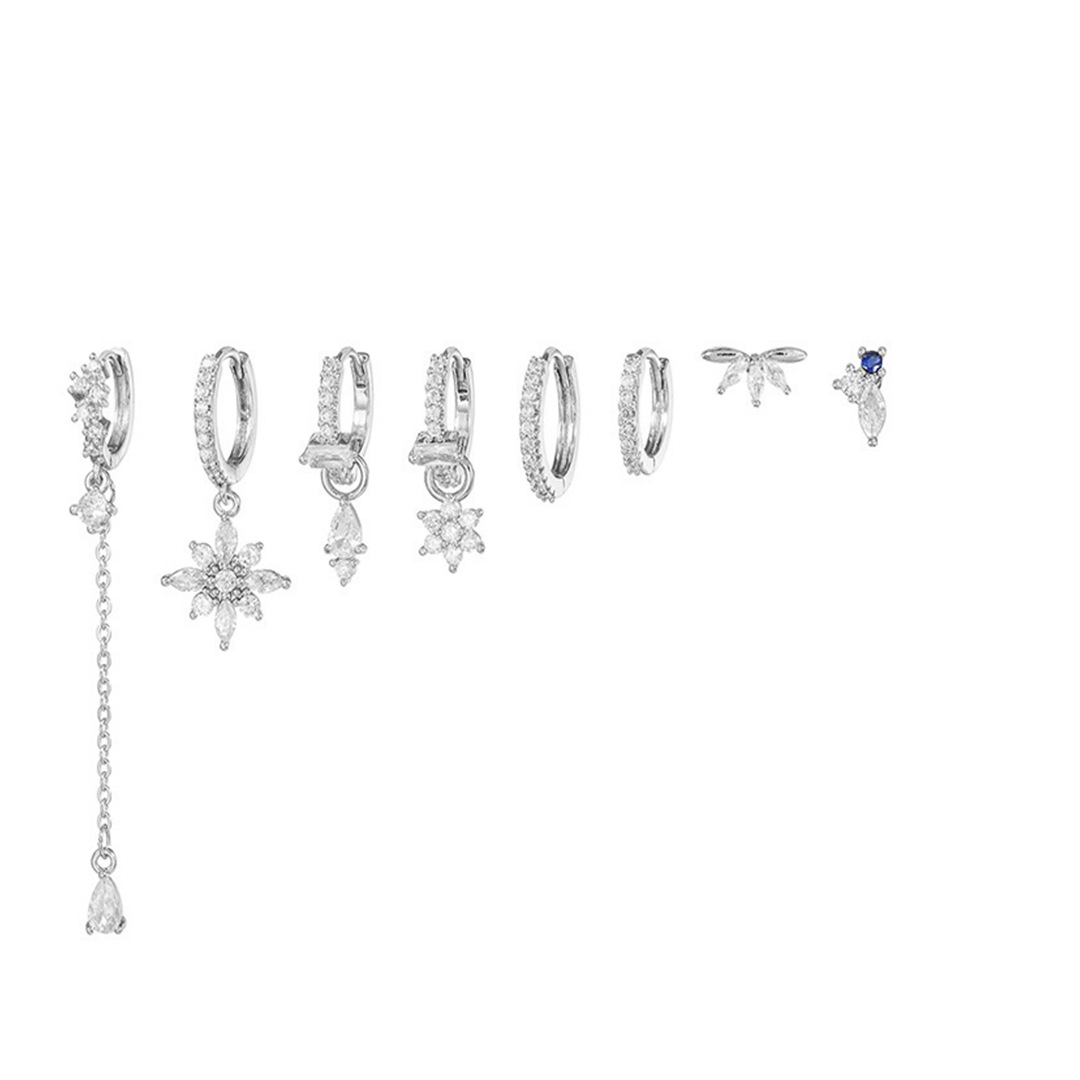 跨境流苏吊坠花朵锆石耳扣 S925银针时尚耳环铜镀18k气质耳钉套装 English | 投诉