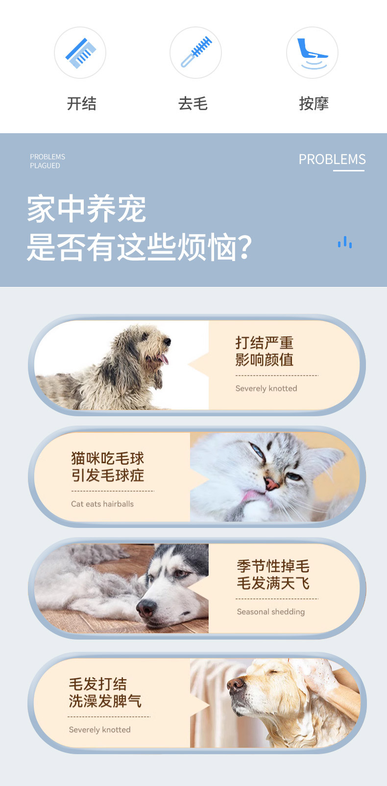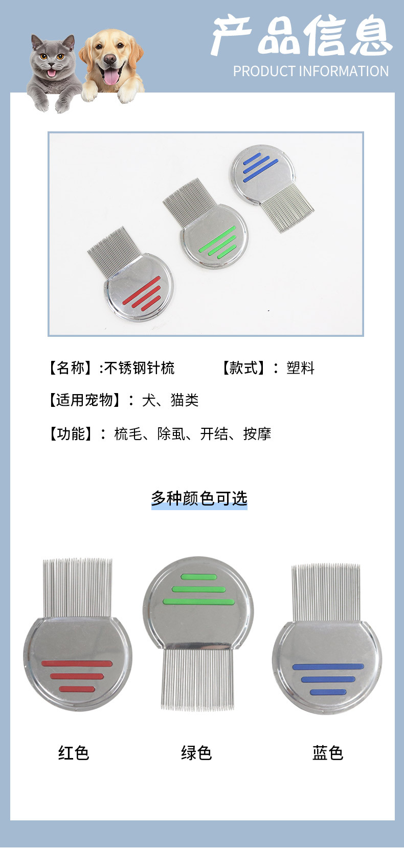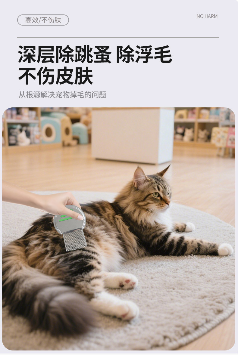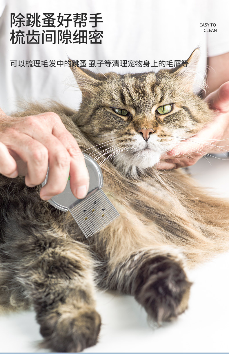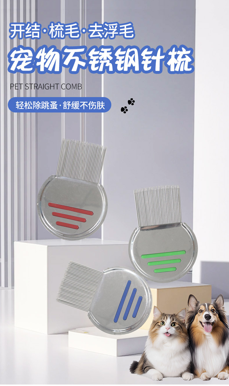 宠物梳头虱去跳蚤猫狗开结梳不锈钢螺纹针梳脱毛梳超密细齿篦子梳 投诉