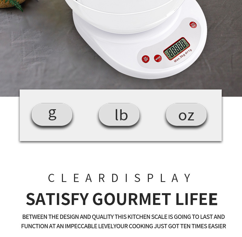 5kg/1g记忆厨房秤商超两用g/lb/oz切换可拆卸碗电子秤厨房电子称