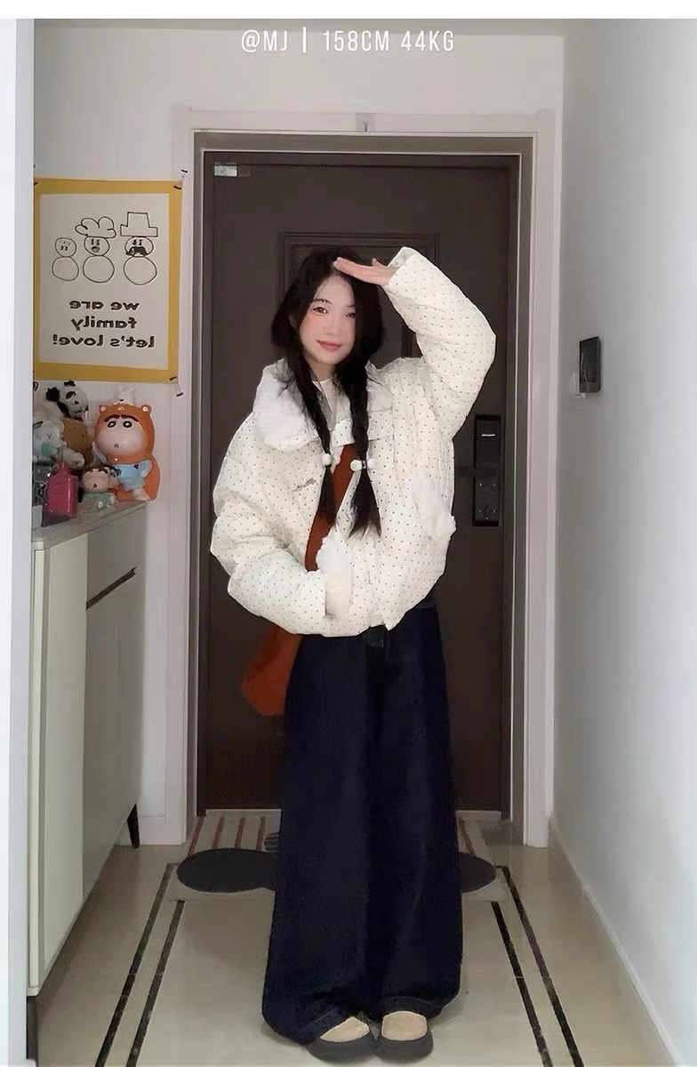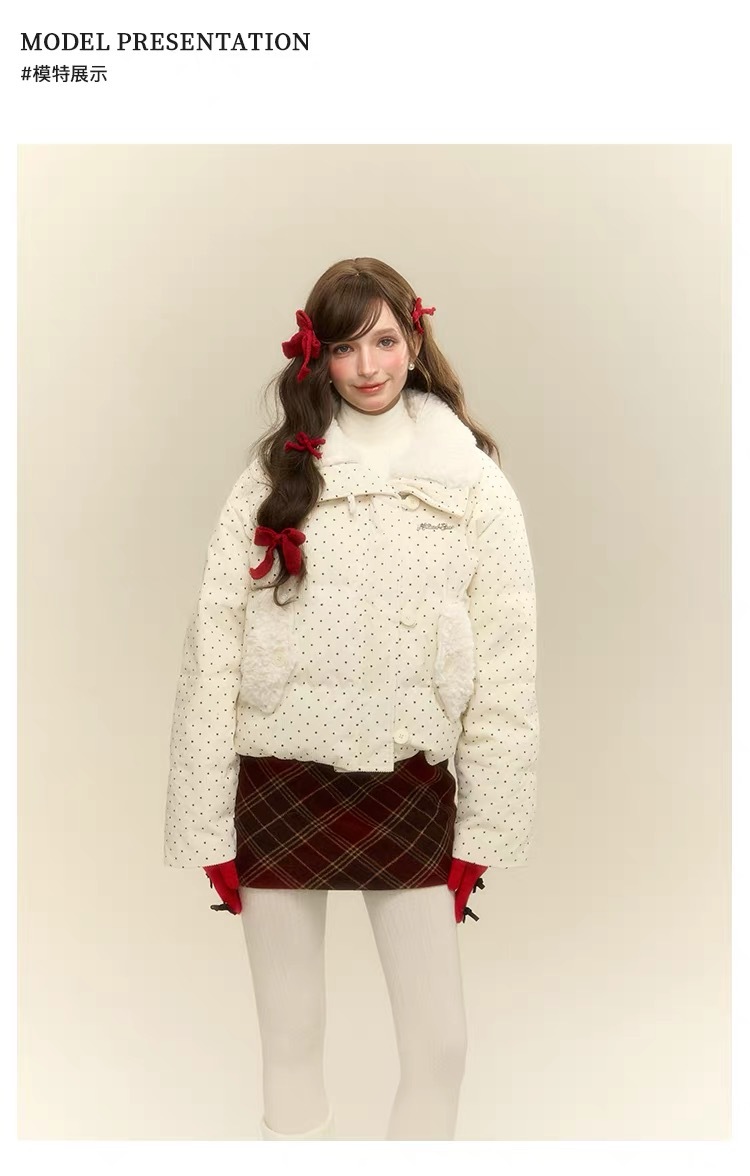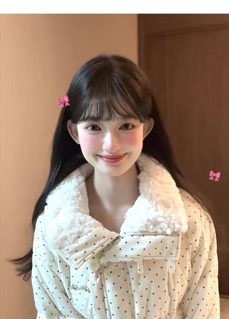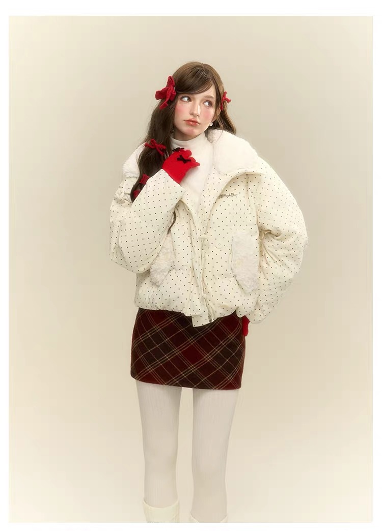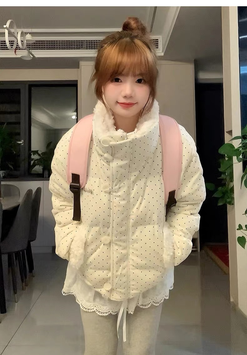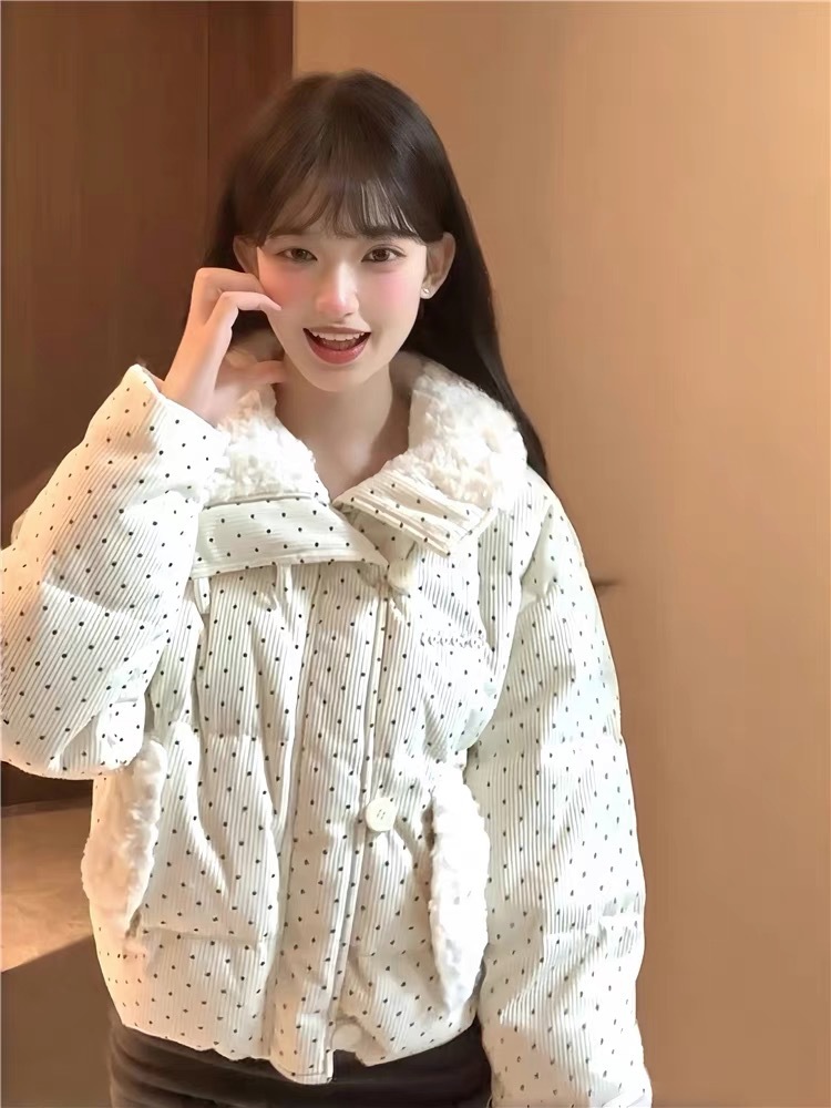 拼接设计感小众波点棉服上衣女冬季甜美可爱羊羔毛翻领外套棉衣韩 投诉