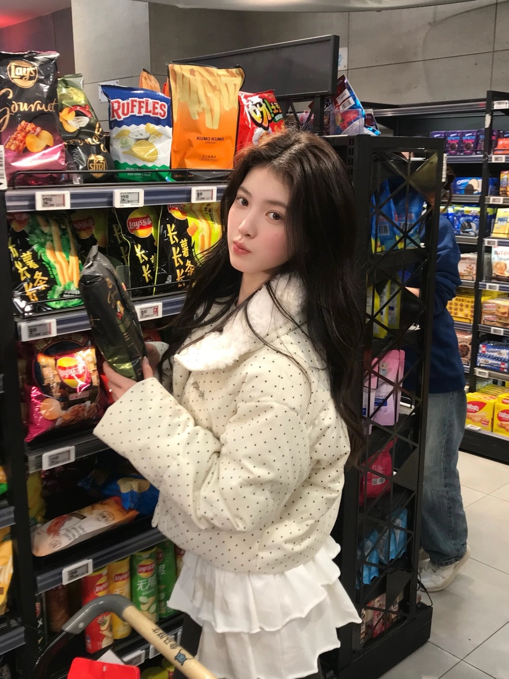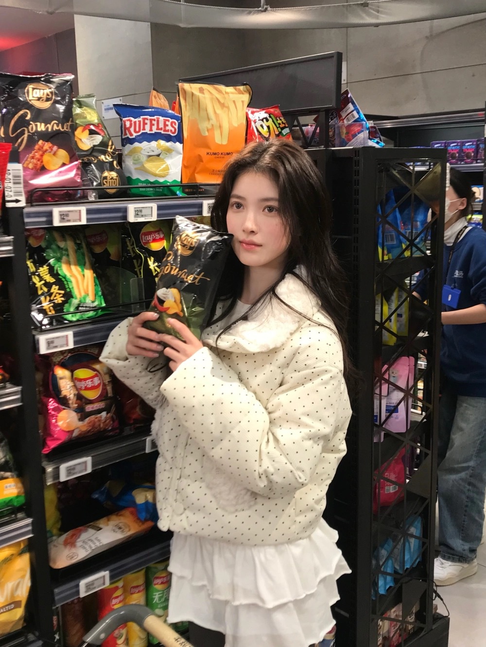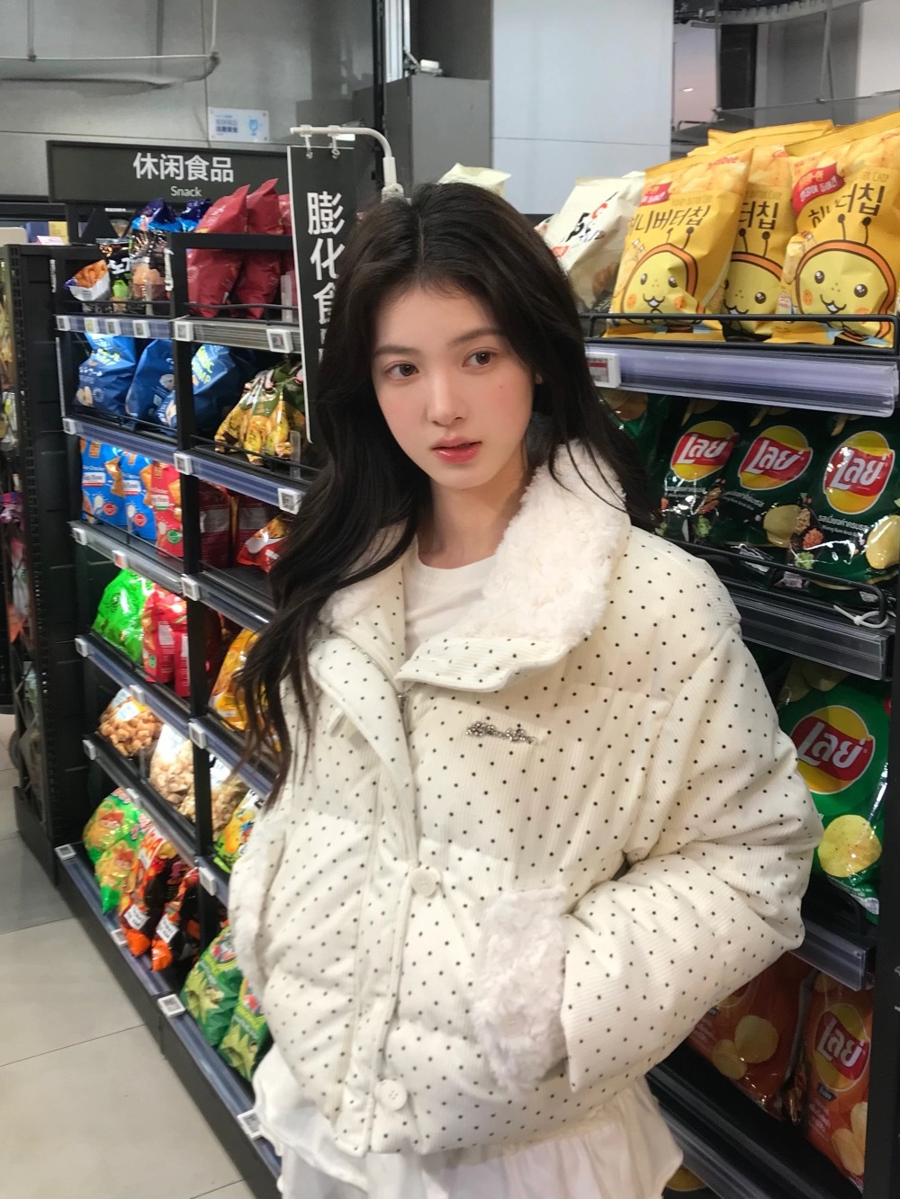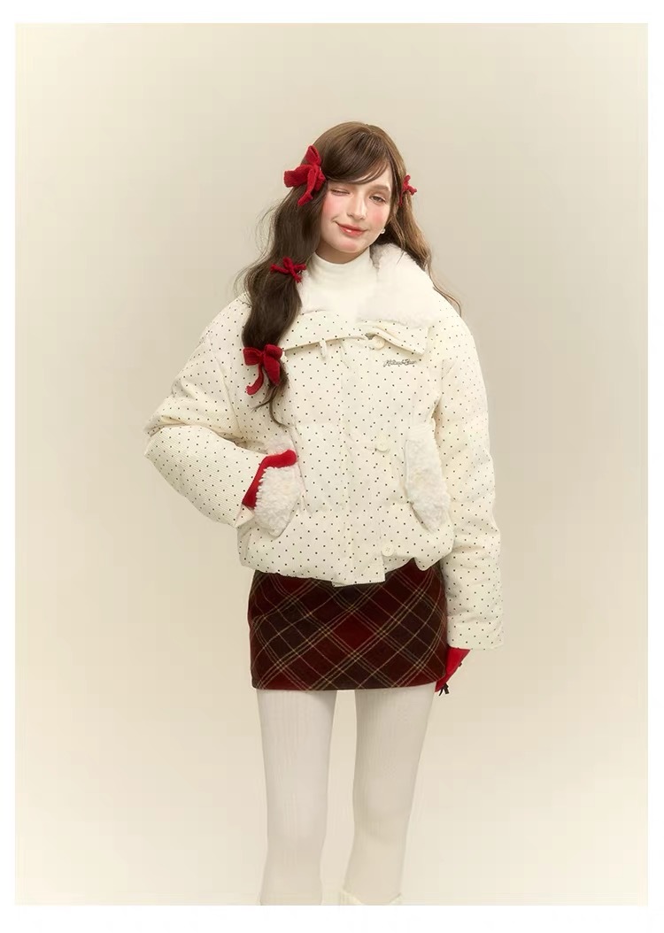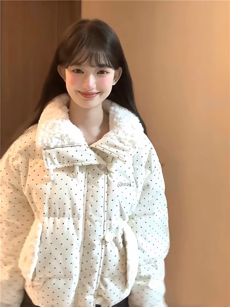拼接设计感小众波点棉服上衣女冬季甜美可爱羊羔毛翻领外套棉衣韩