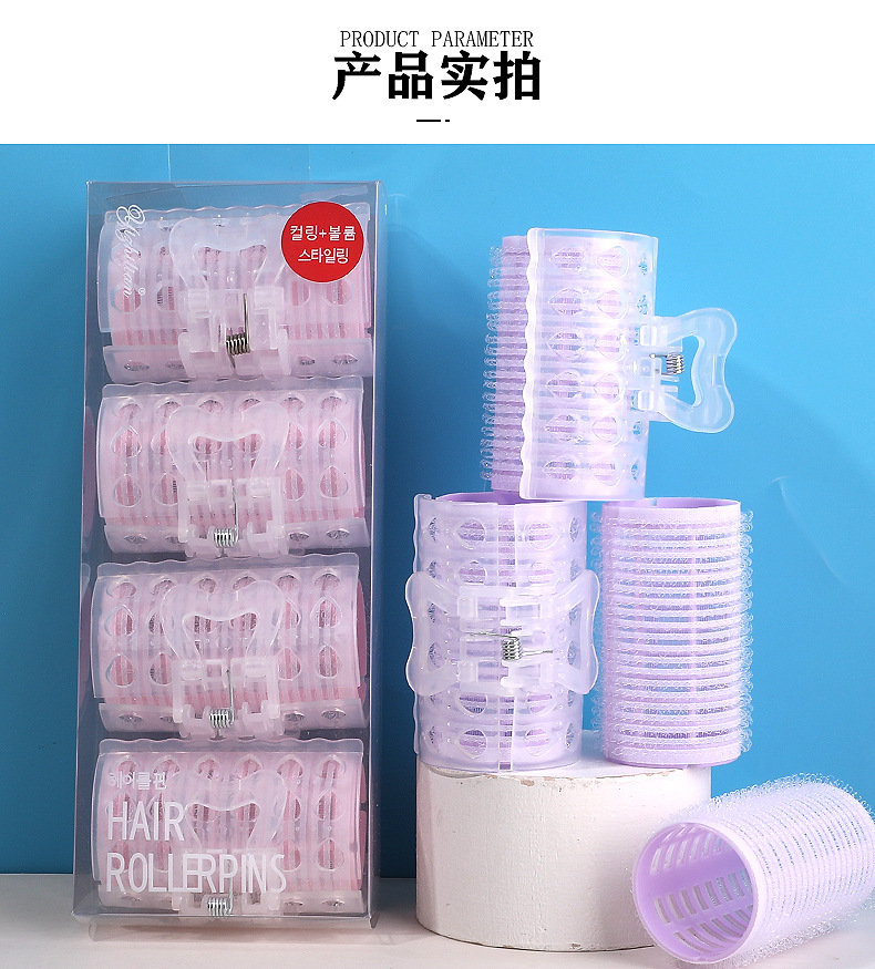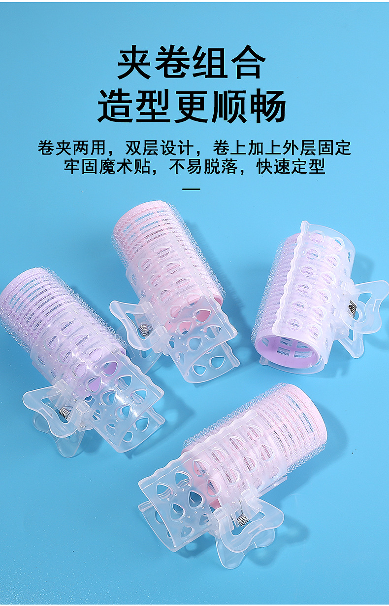 4PCS带发夹空气刘海卷发器 蓬松大波浪魔术贴懒人自粘卷发筒