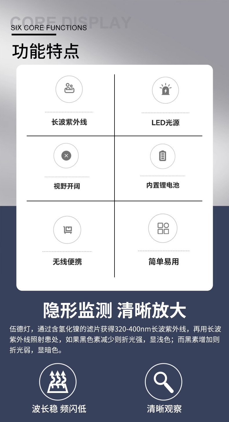 VW1医用手持式伍德灯充电宠物皮肤疾病检测仪过滤紫外线家用医疗
