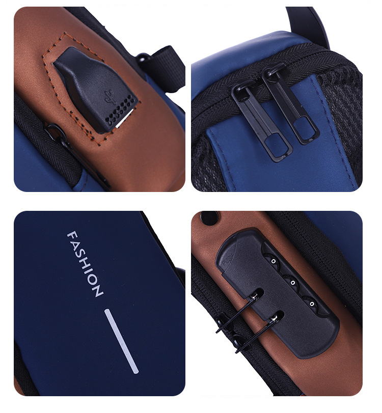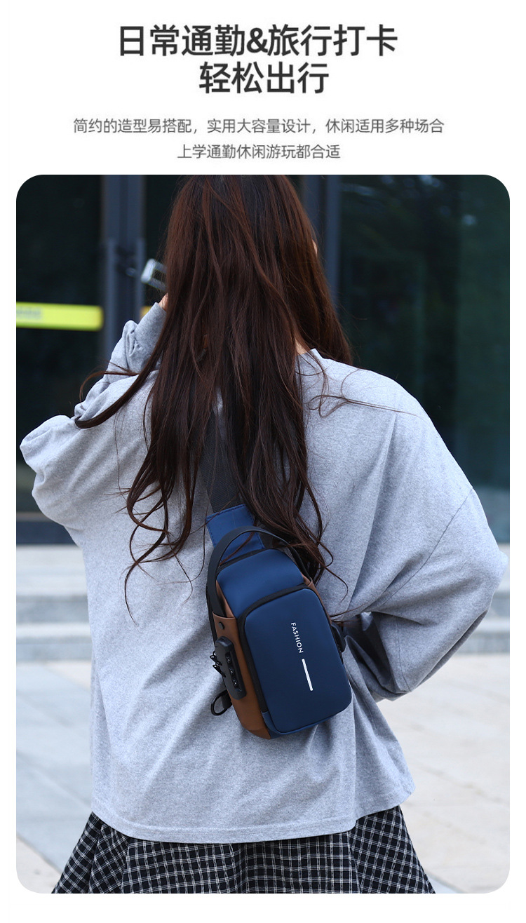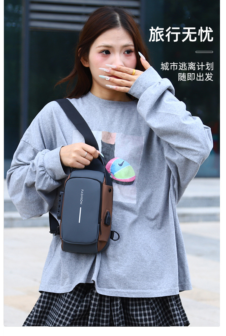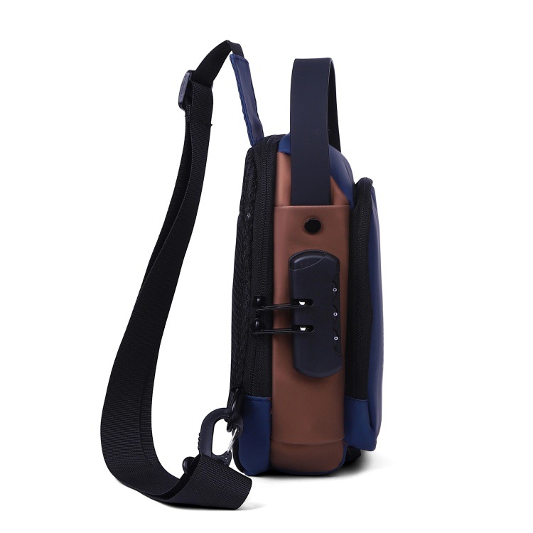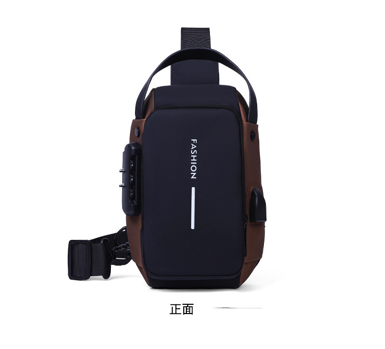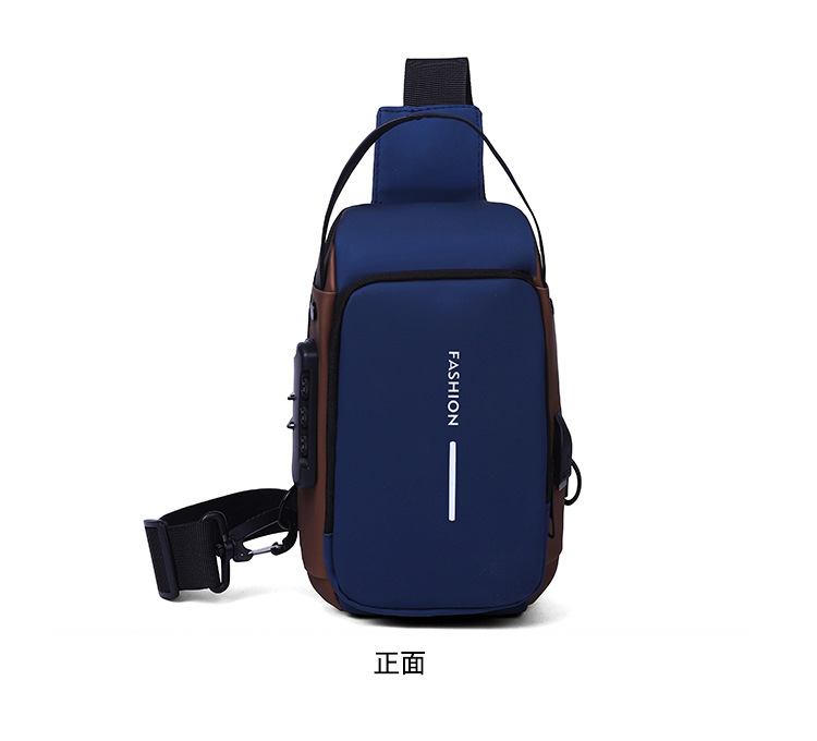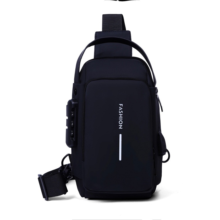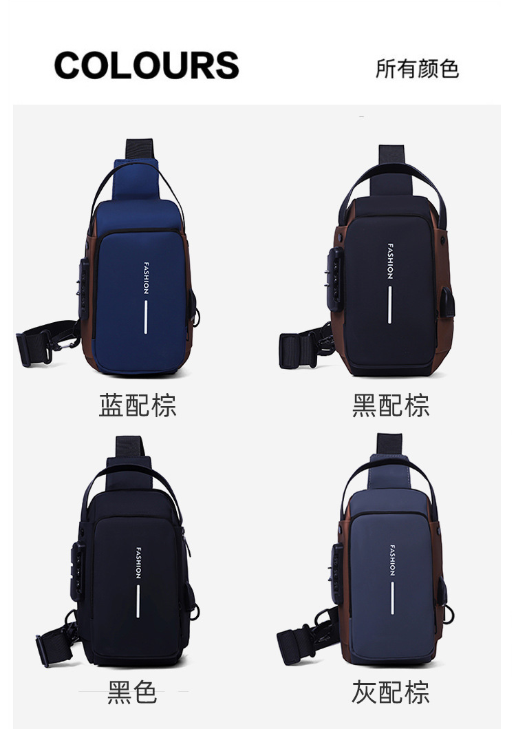 新男士密码防盗单肩多功能跨境运动防水斜挎大容量跑车机车包胸包