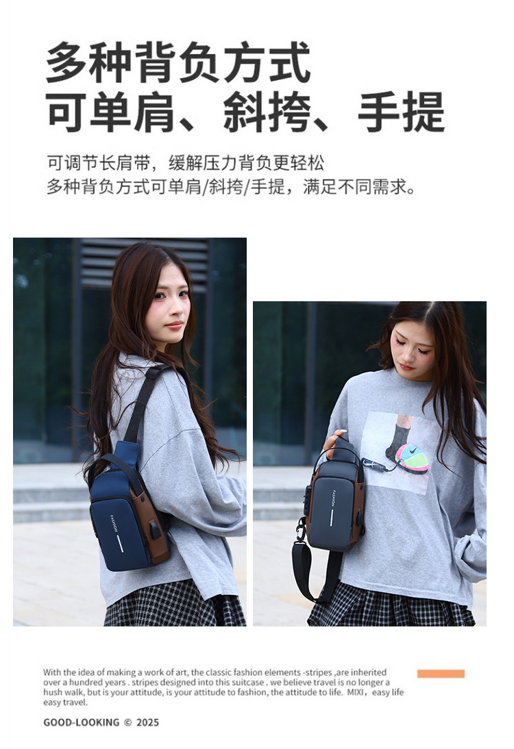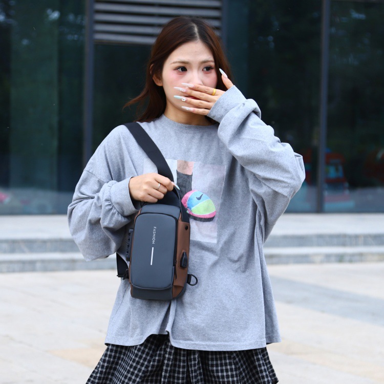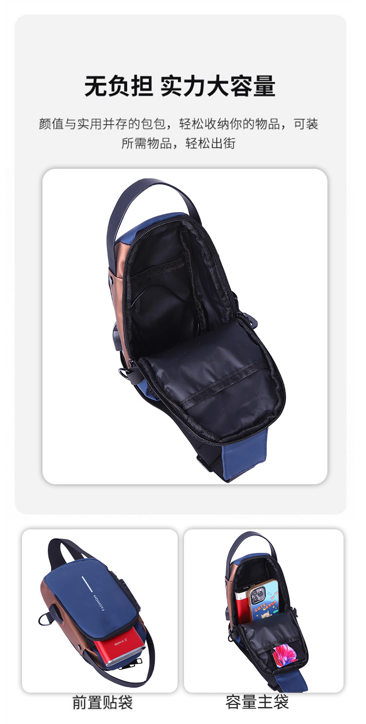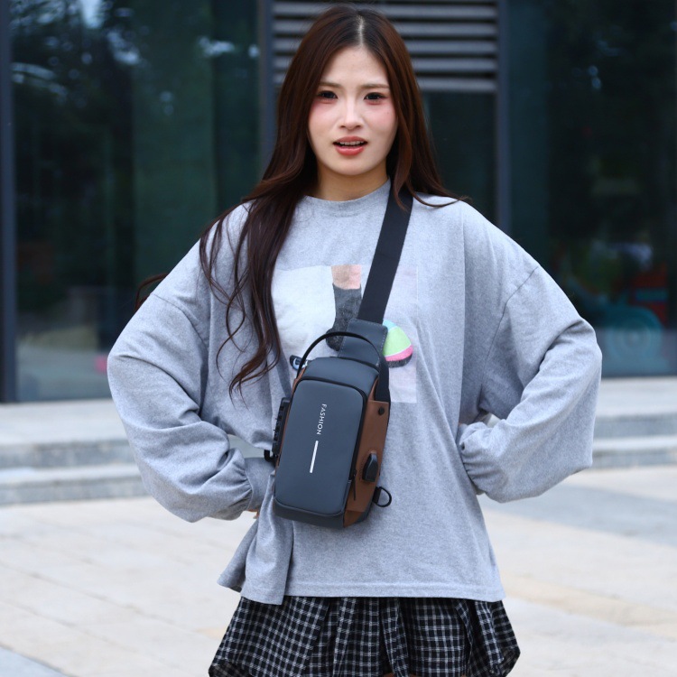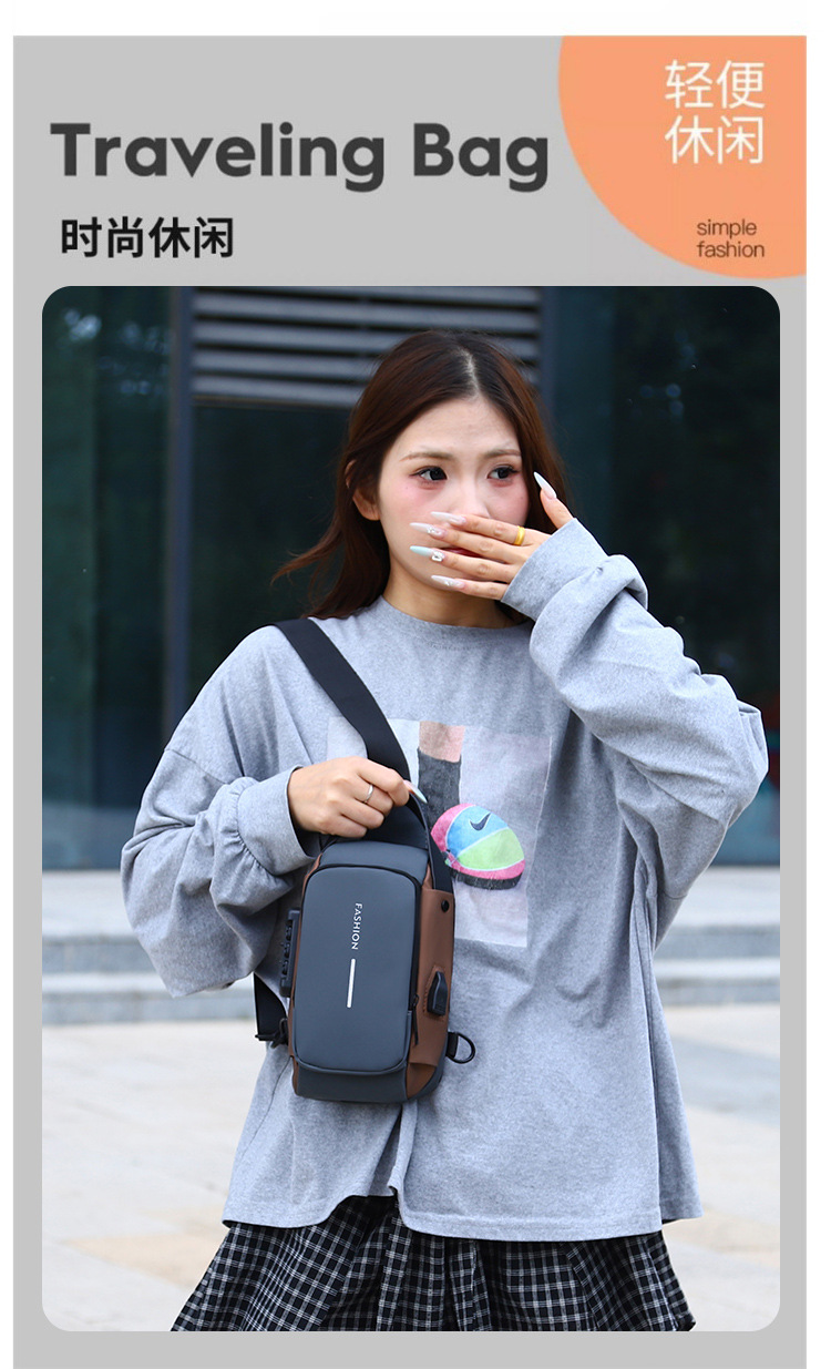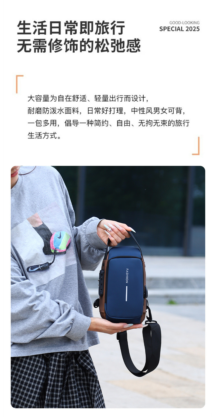 新男士密码防盗单肩多功能跨境运动防水斜挎大容量跑车机车包胸包