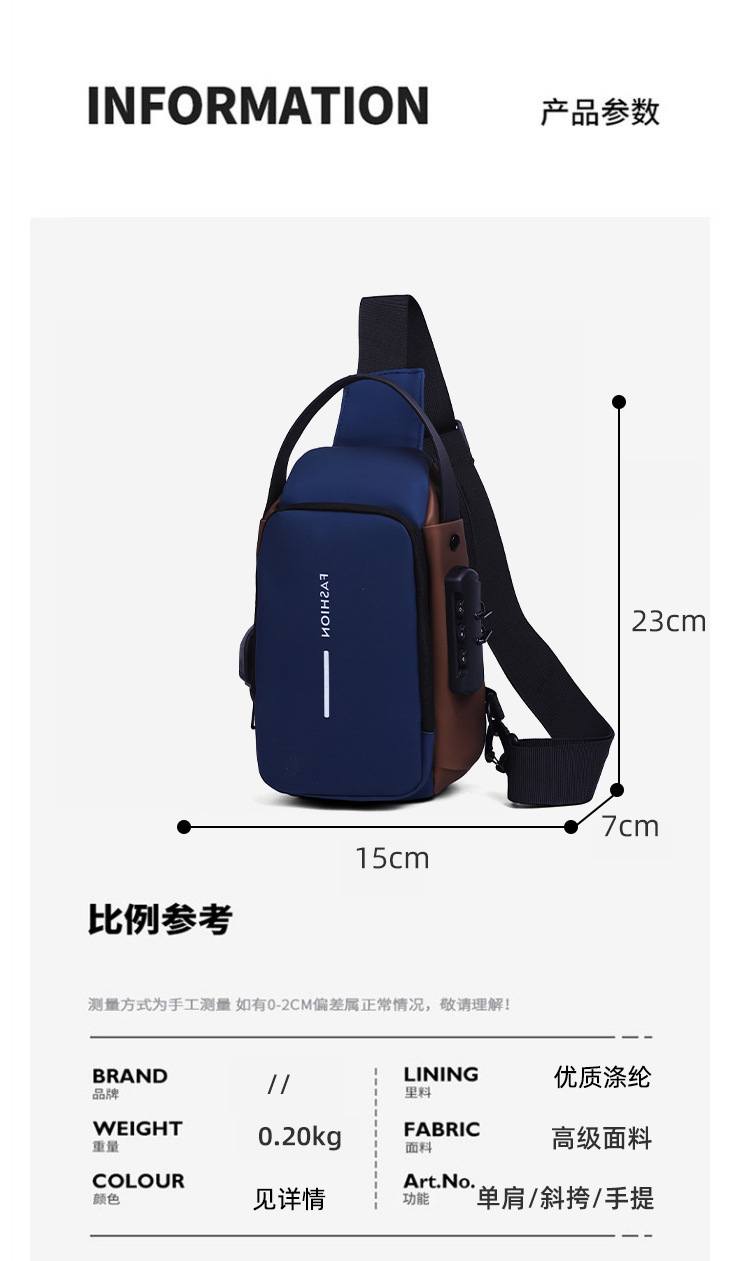 新男士密码防盗单肩多功能跨境运动防水斜挎大容量跑车机车包胸包 投诉