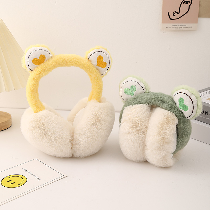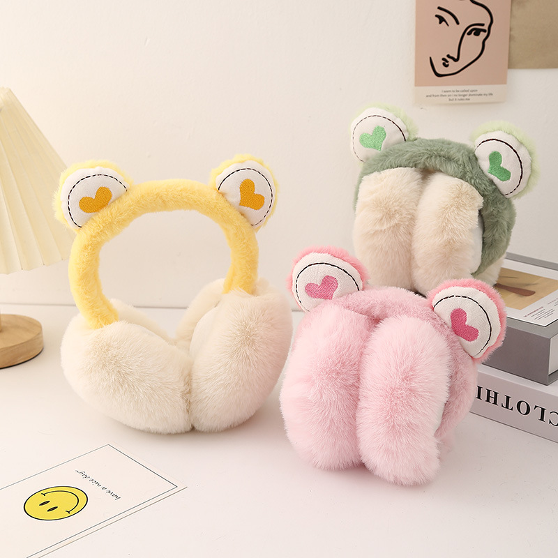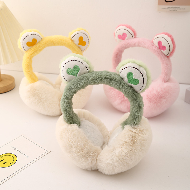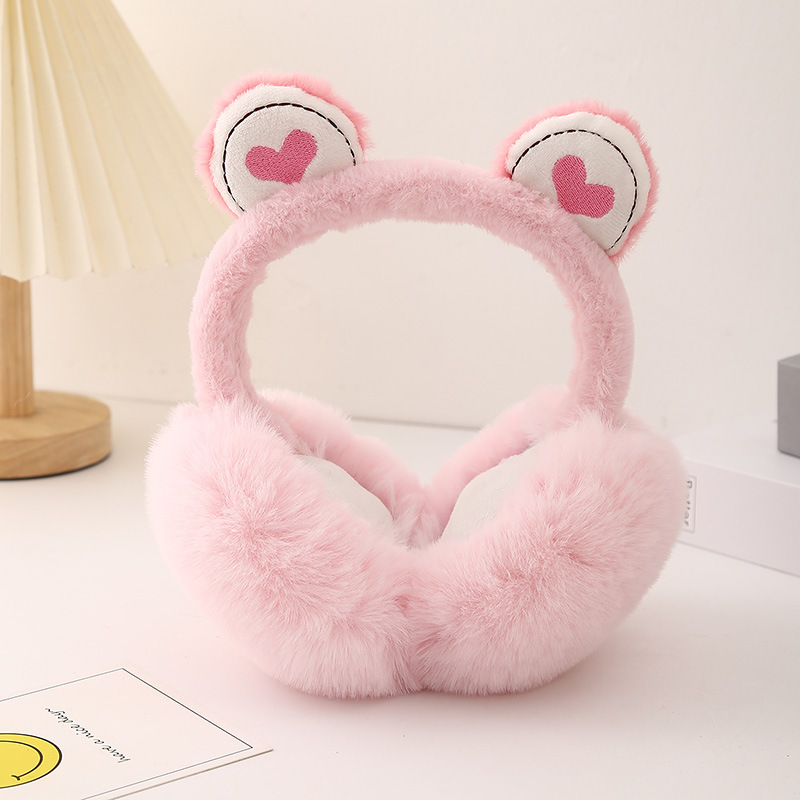 冬季毛绒保暖青蛙爱心儿童卡通耳捂防寒护耳可爱保暖舒适可折叠耳