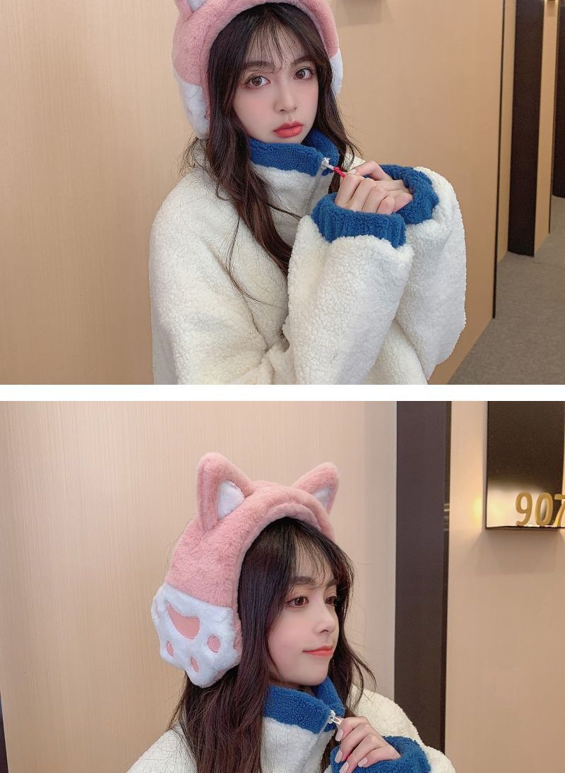 秋冬季新款猫爪耳罩可爱毛绒猫耳朵保暖防风防寒耳罩耳套耳捂耳包