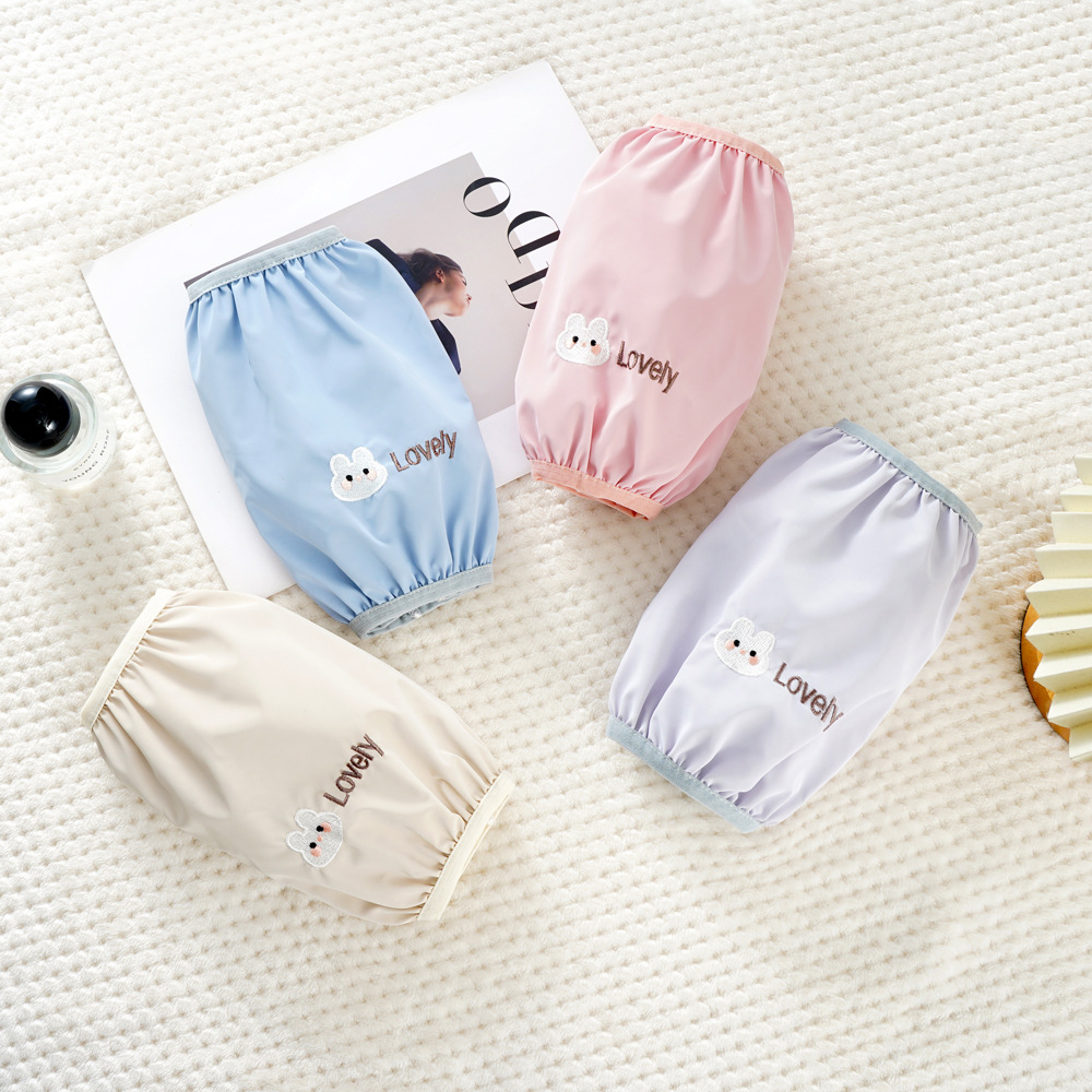 冬季防水耐脏可选色女士长款粉色兔绣花厨房袖套防油套袖男护袖