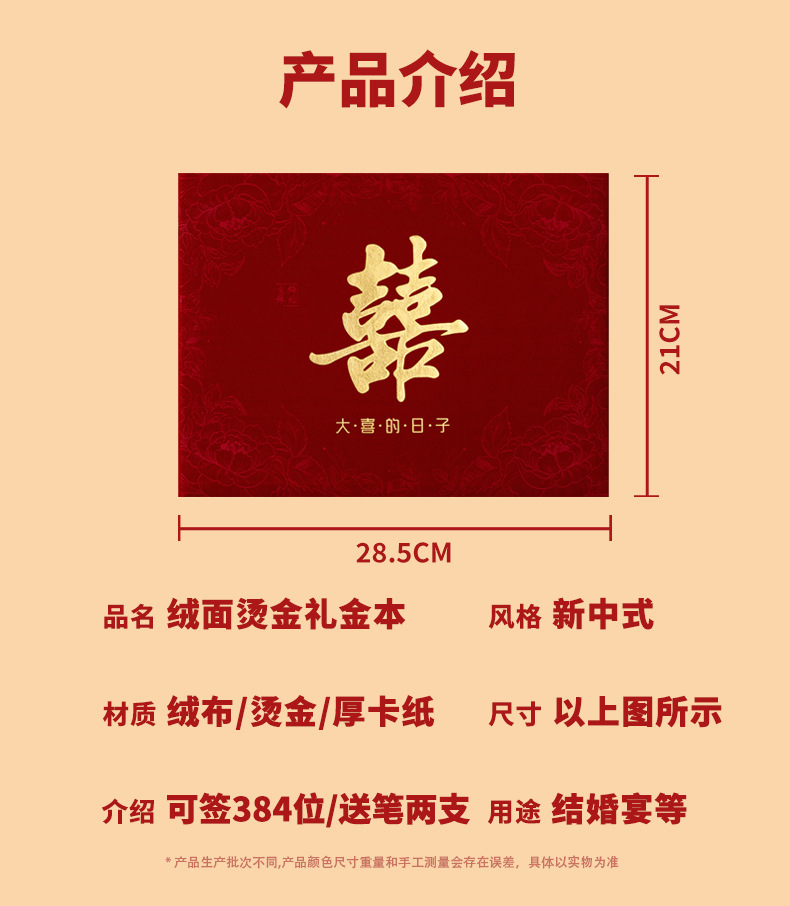 嘉宾礼簿(可签384人 送签到笔两支) ¥850 4999本可售