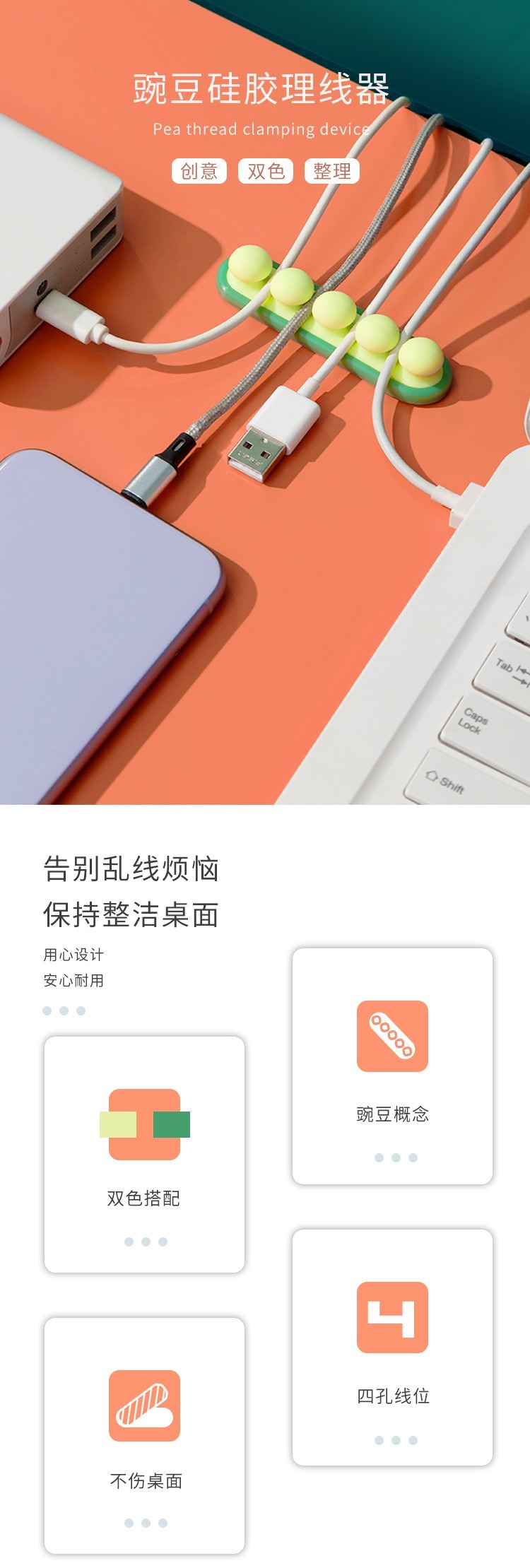 豌豆桌面固定理线器整理收纳神奇集线器自粘绕线器数据线缠线器 投诉