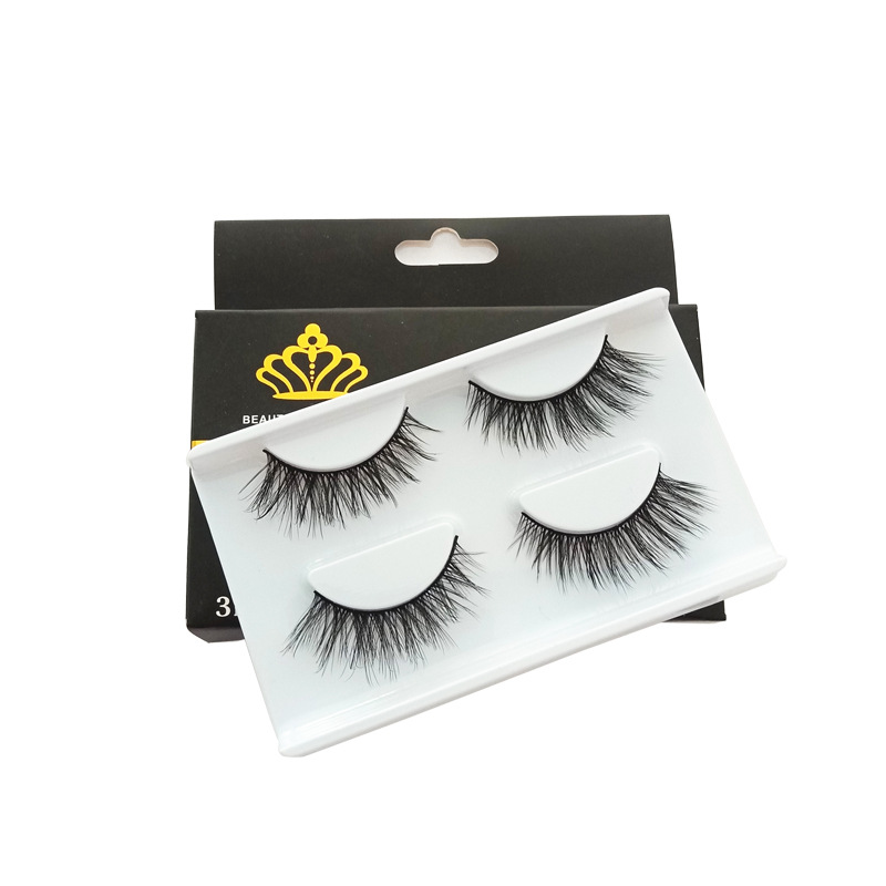 自然假睫毛跨境供应手工制作翘卷浓密片式自然黑梗两对装假睫毛 English | 投诉