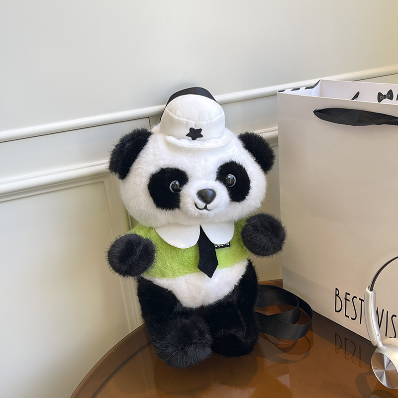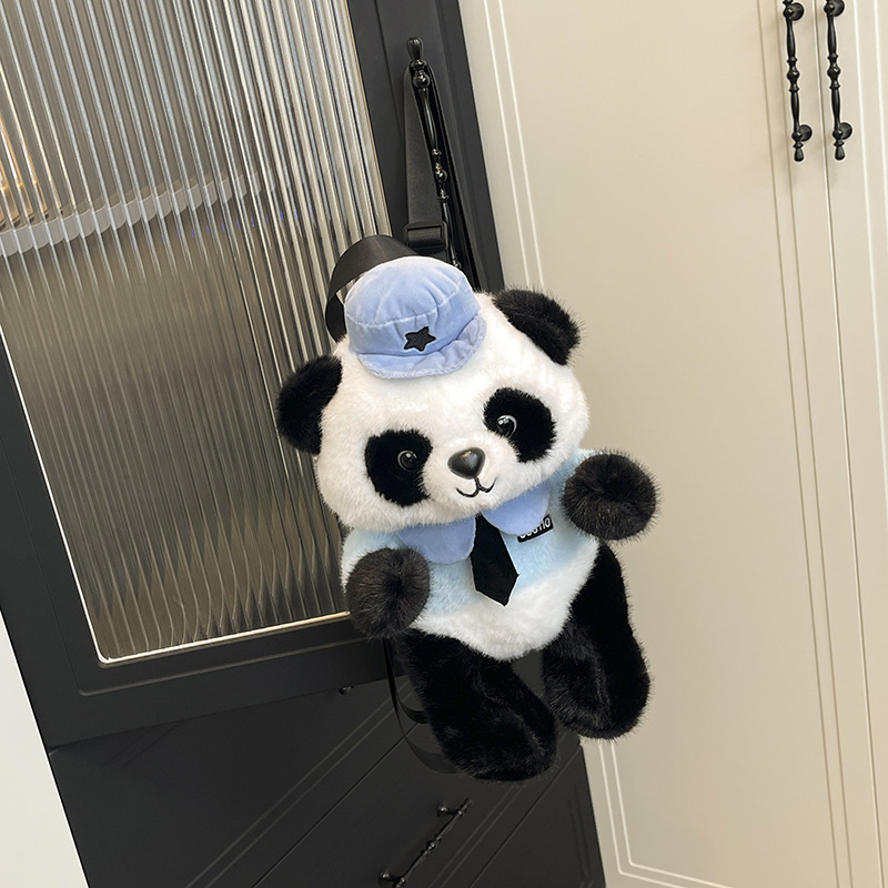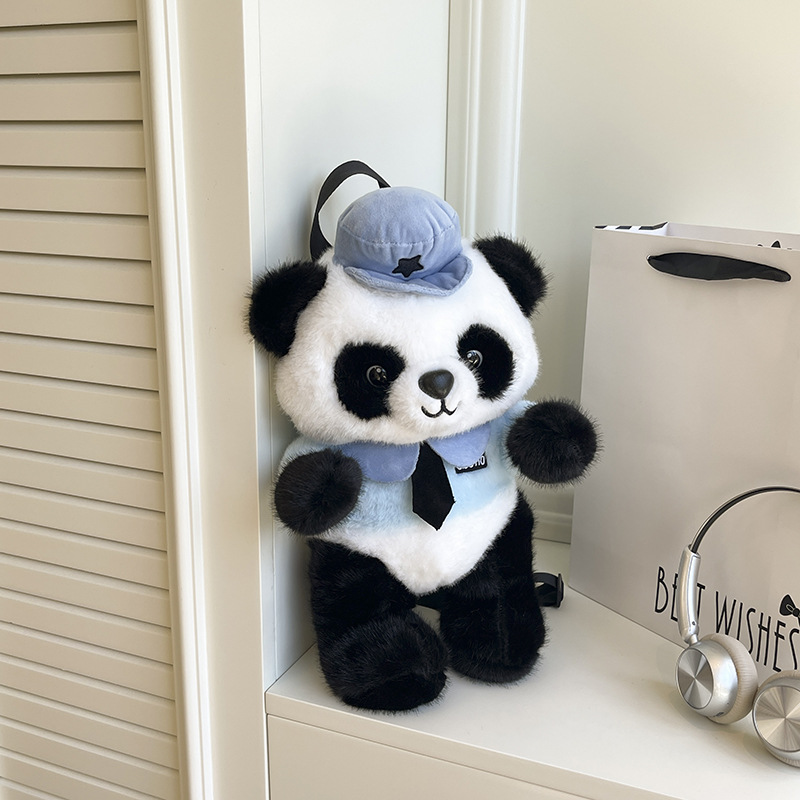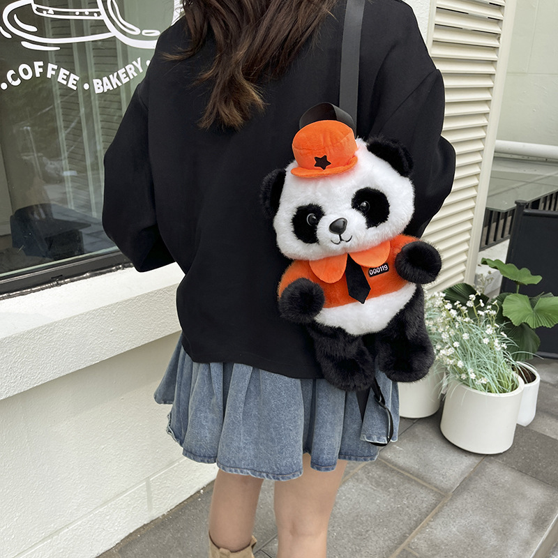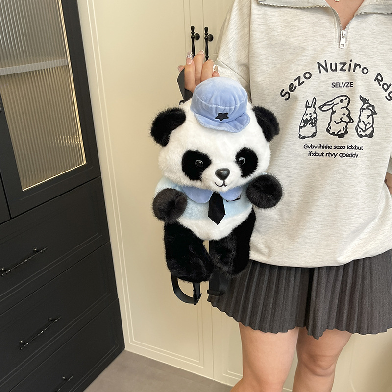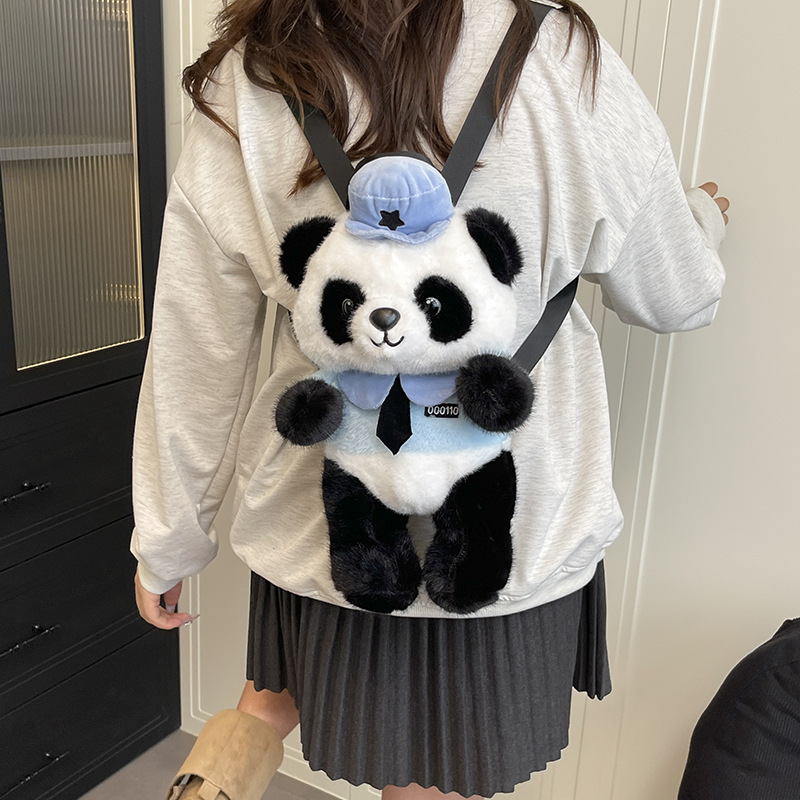 可爱熊猫双背包2025新款女生百搭甜美可爱毛绒包卡通儿童系列包 English | 投诉