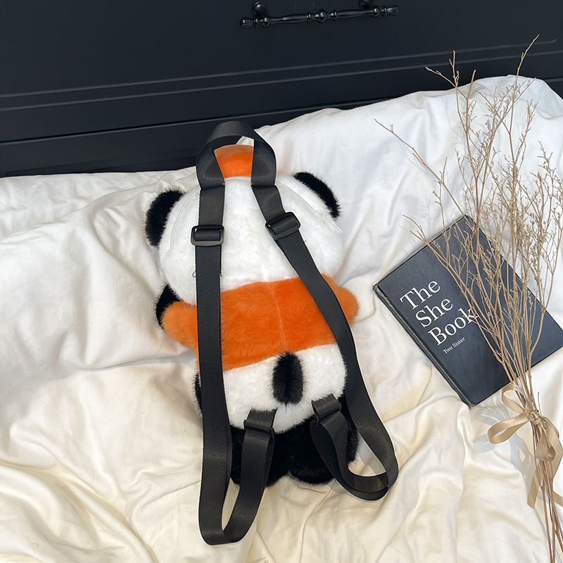可爱熊猫双背包2025新款女生百搭甜美可爱毛绒包卡通儿童系列包