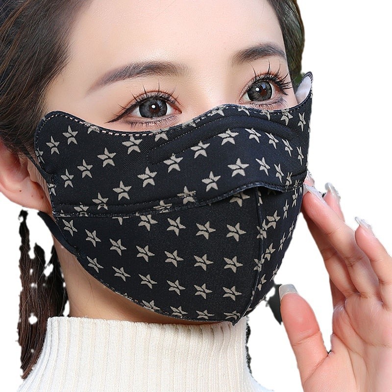 加厚保暖口罩女冬季开口防寒防风冬天时尚护眼角成人骑车护脸面罩