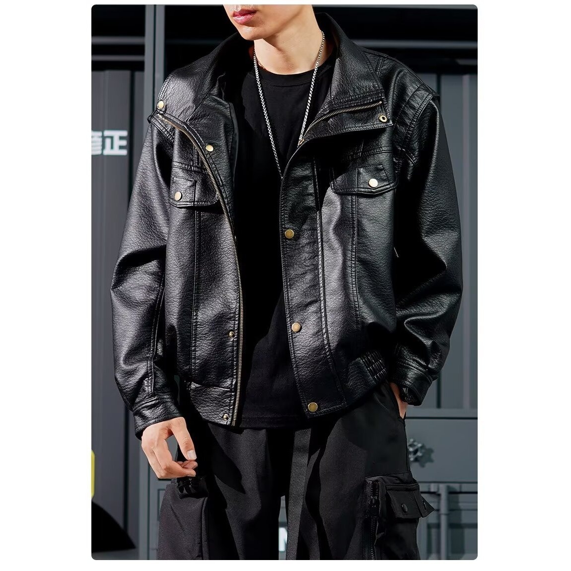 黑色复古痞帅PU机车皮衣男款秋季新款高级感潮流时尚夹克外套男装 投诉