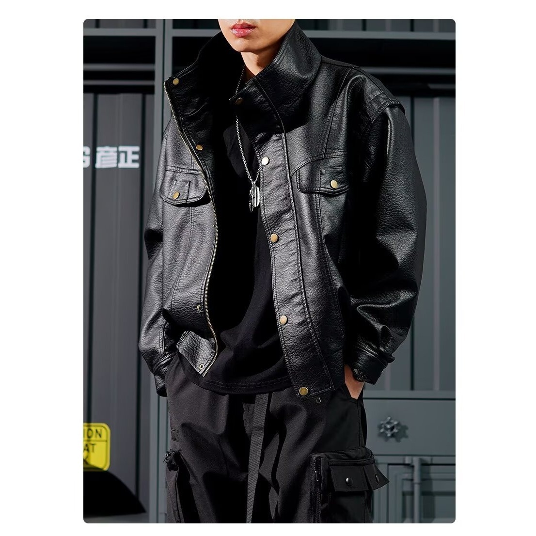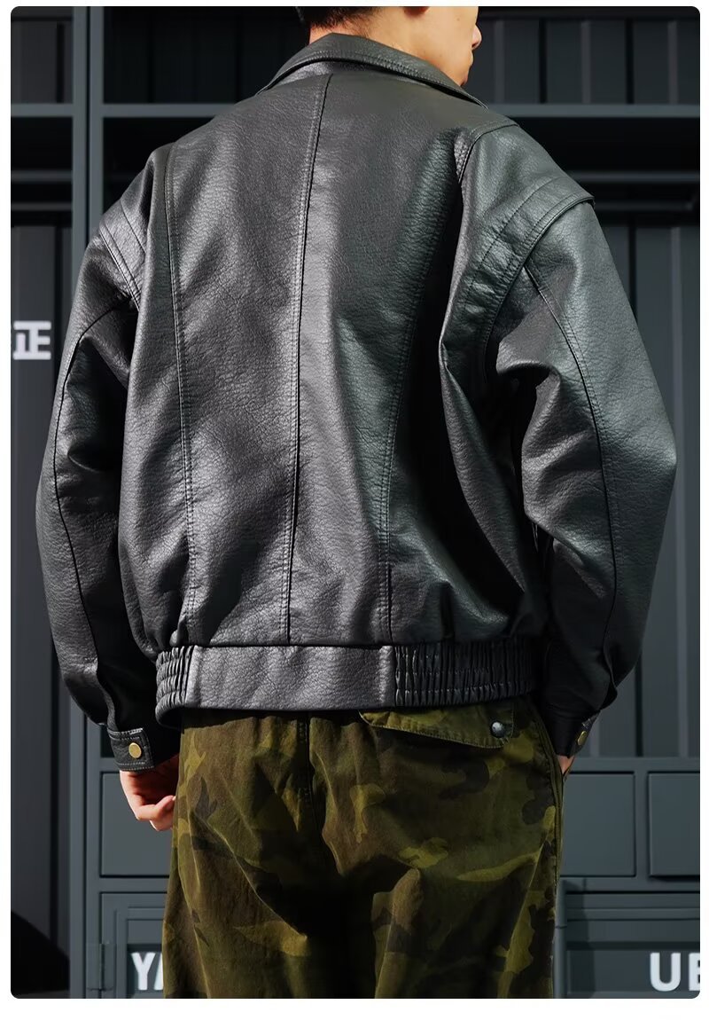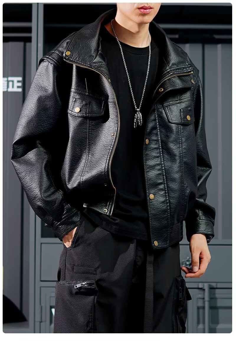 黑色复古痞帅PU机车皮衣男款秋季新款高级感潮流时尚夹克外套男装