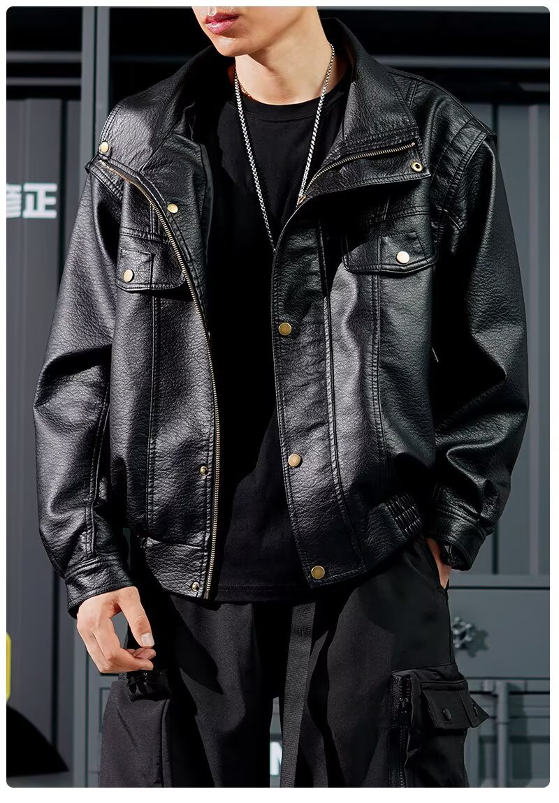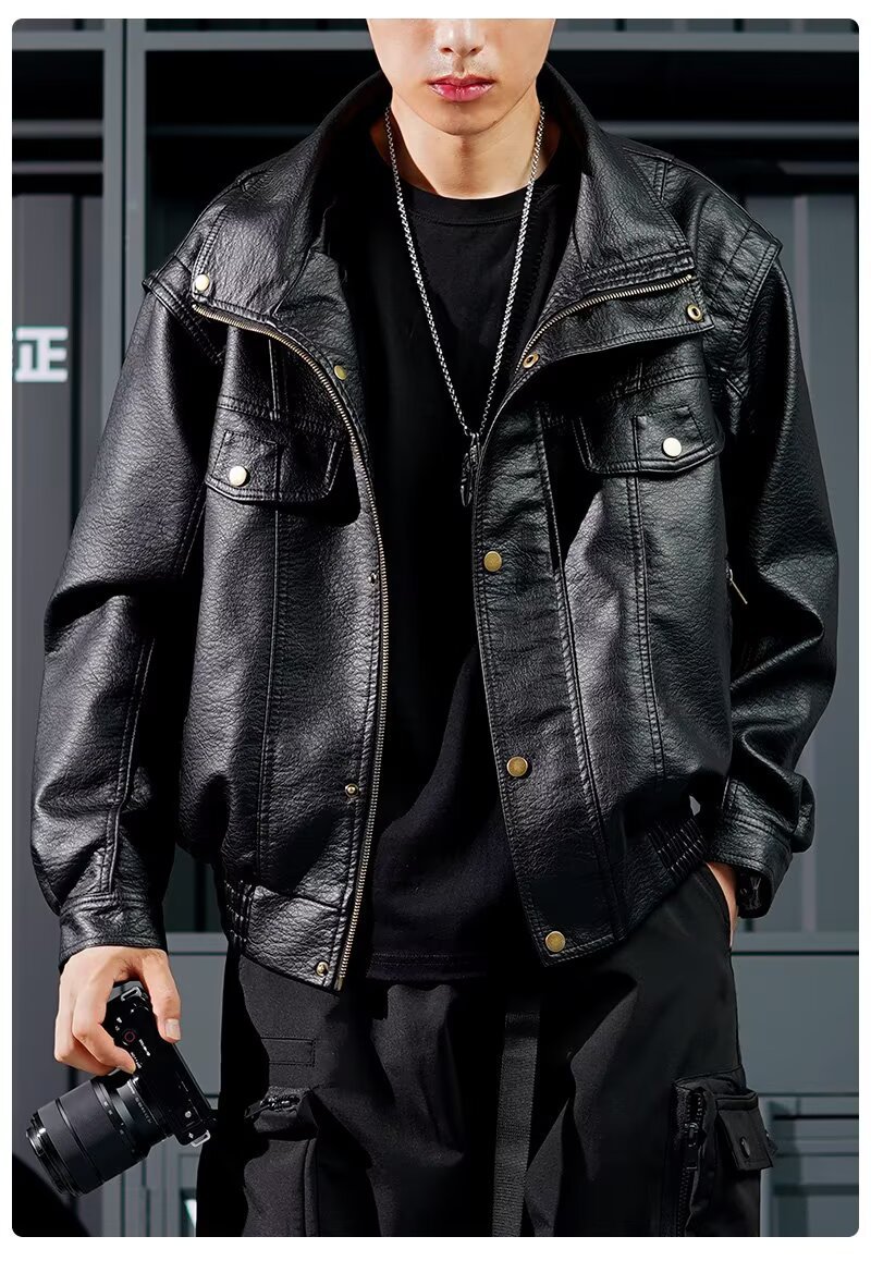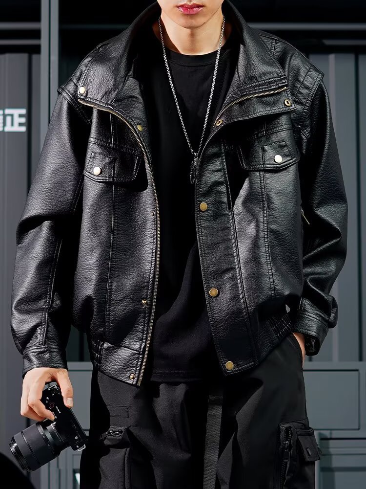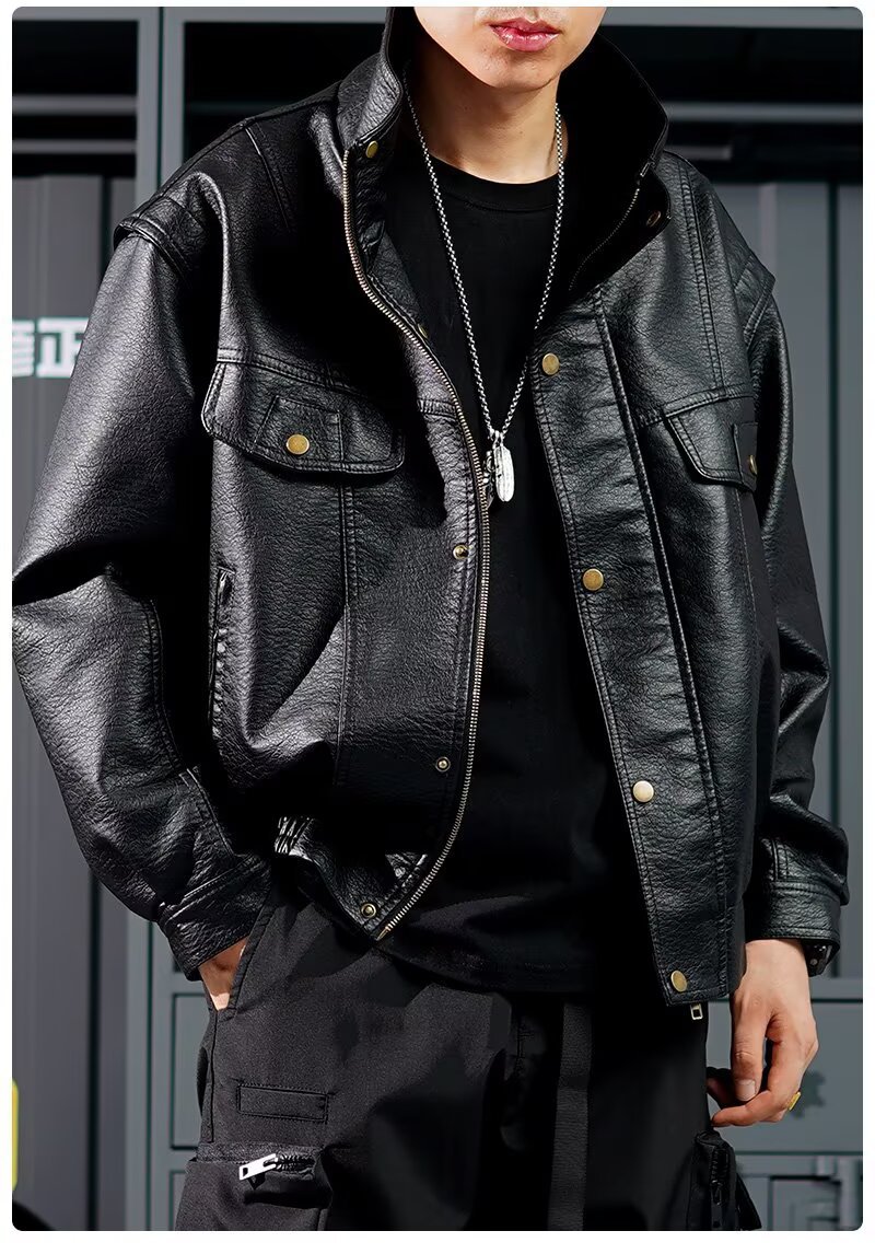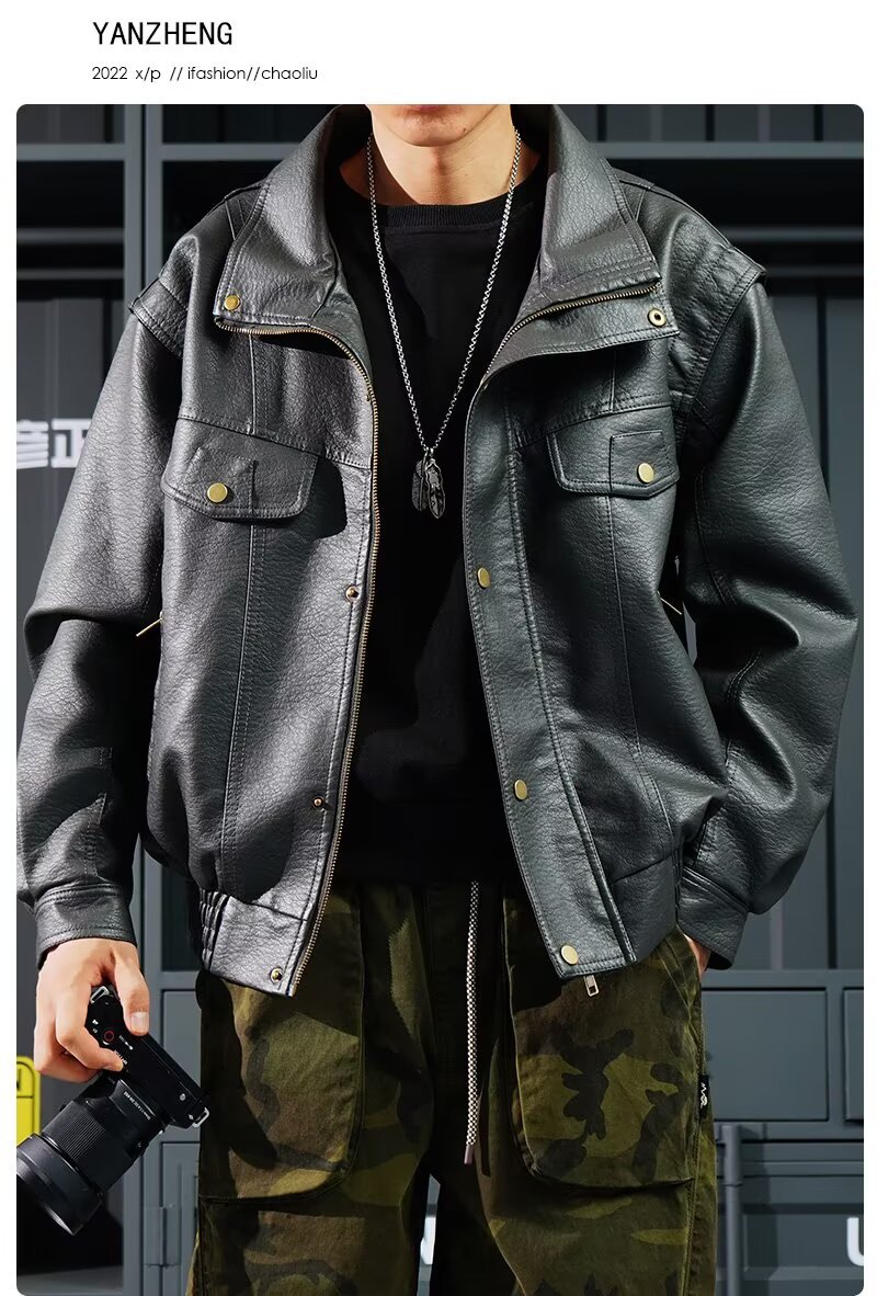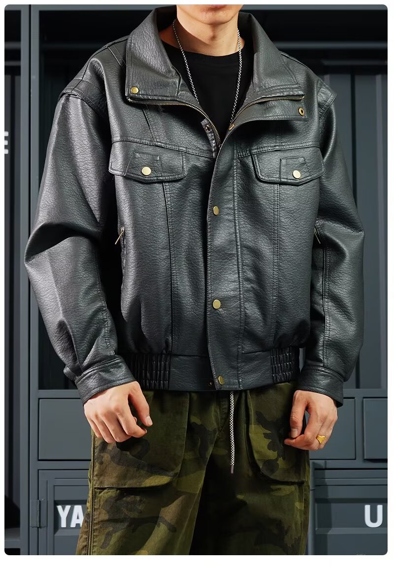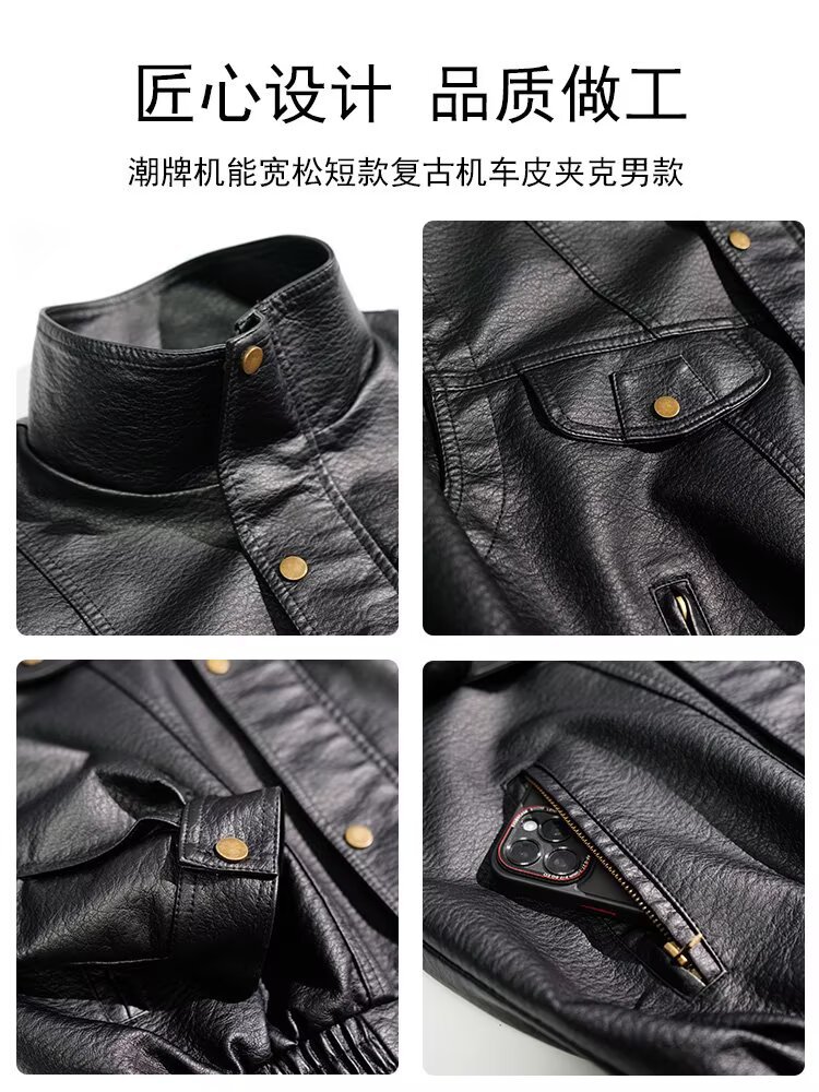 货源类别: 现货 品牌: 其他 风格: 复古 淘货类别: 青春流行(18-24岁) 衣长: 普通款(50cm<衣长≤65cm) 版型: 合体型 领型: 立领 门襟: 拉链 是否连帽: 不连帽 是否库存: 是 库存类型: 整单 上市年份/季节: 2025年秋季 皮质分类: PU 里料成分: 聚酯纤维(涤纶) 货号: Y1016 适用场景: 休闲 适合季节: 秋季 适用人群: 青年 工艺: 免烫处理 款式细节: 多口袋 重量: 0.5 kg/件