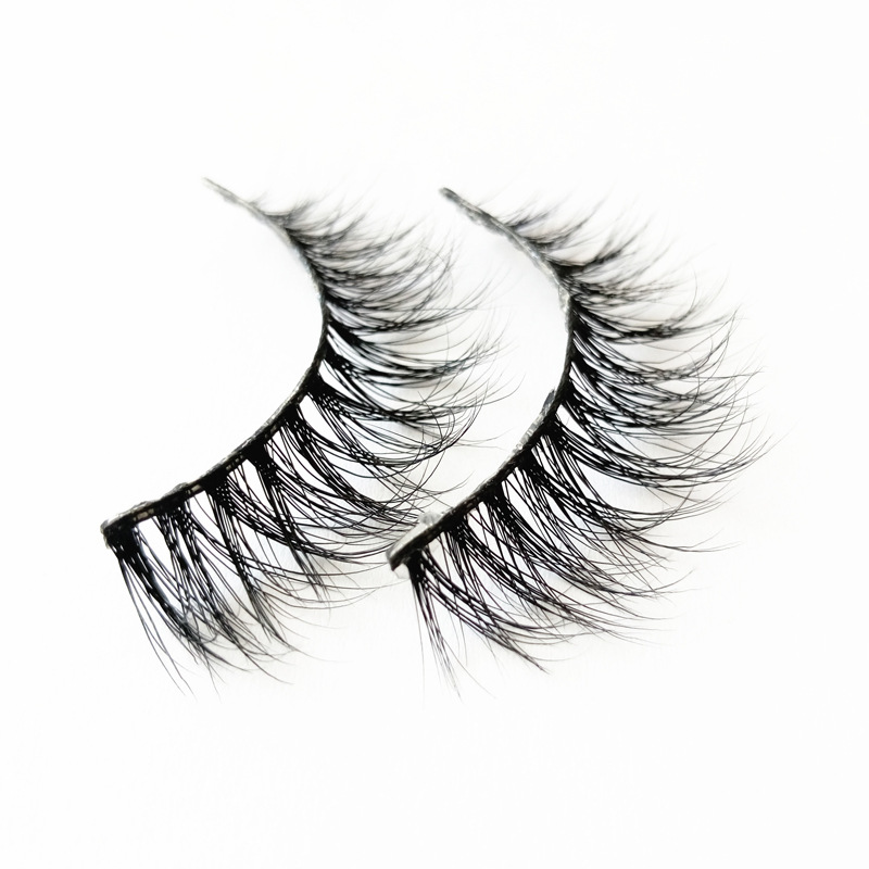 工厂批发3D水貂毛假睫毛凌乱纤长柔软舒适跨境供应对装假眼睫毛