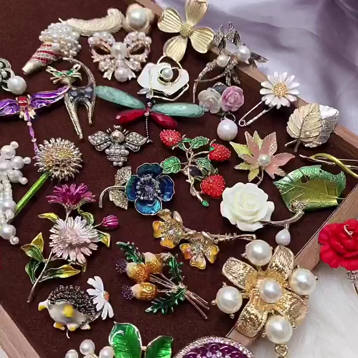 Vintage复古风镶钻花朵胸针时尚国风滴油高级感动物胸花珍珠别针
