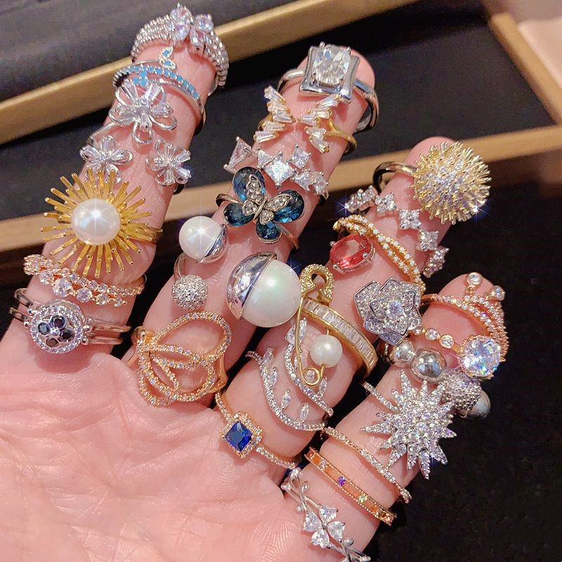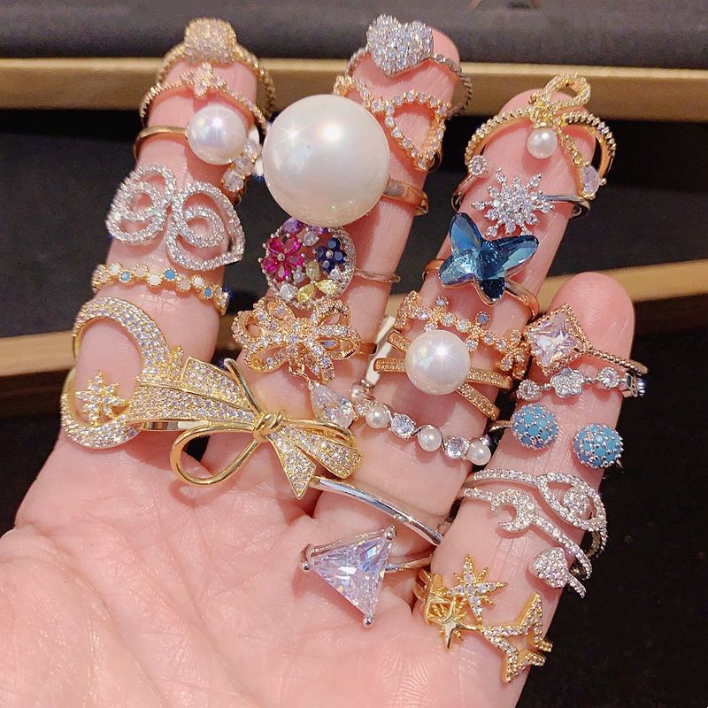 特价微镶锆石轻奢高级闪钻戒指珍珠镶钻百搭指环镀真金超美细戒指