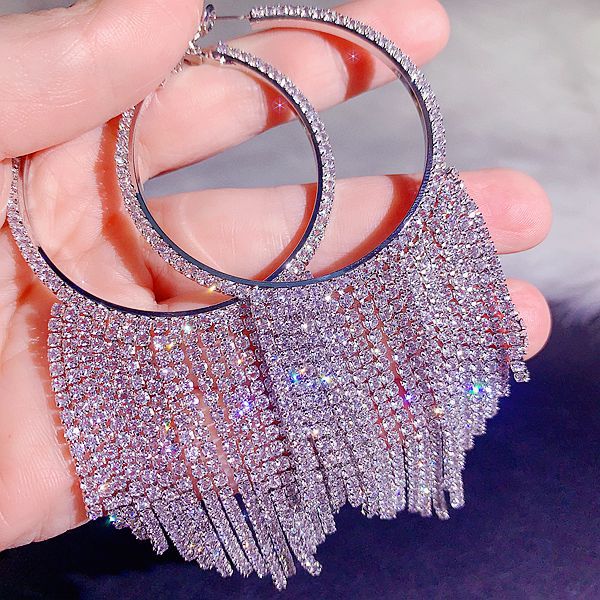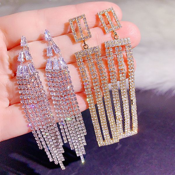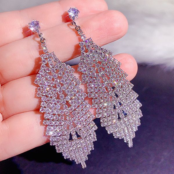 奢华重工高级感锆石流苏耳环高档超闪满钻礼服婚纱配饰耳坠耳钉