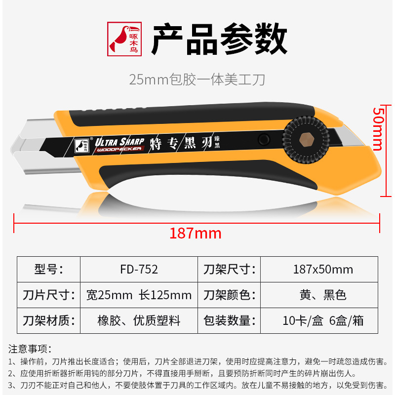 啄木鸟刀架FD-752重型切割25mm大号美工刀重型切割工具介刀替刀 投诉