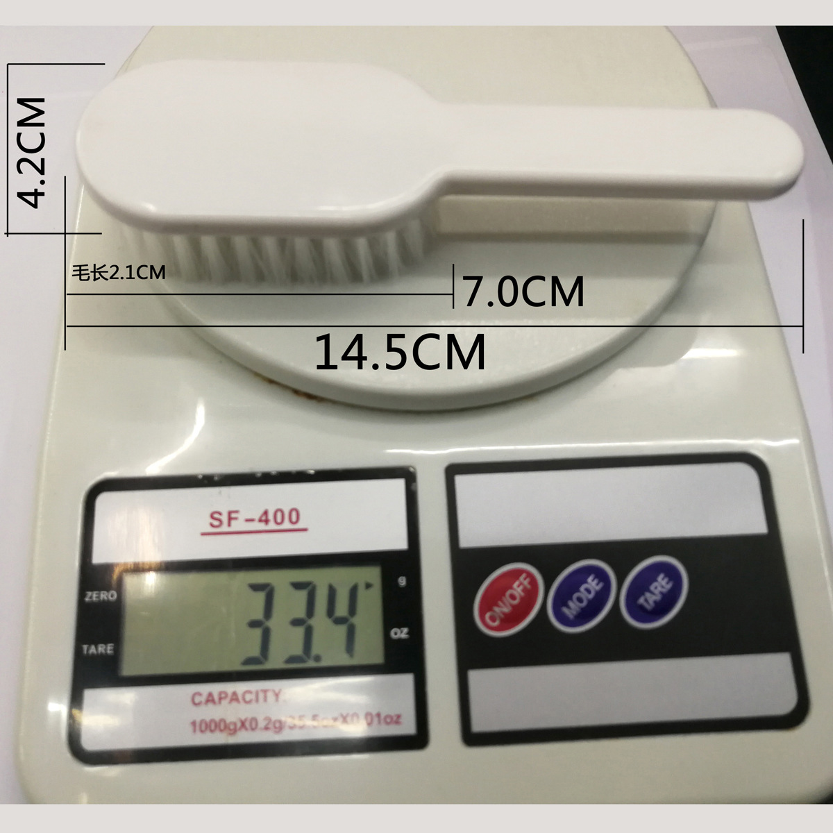 方刷:14.5*4.2*3CM 重量:33.4克 图上柄材料:ABS PP毛, 可定做 尼龙毛 可定制LOGO 来色定制材料色
