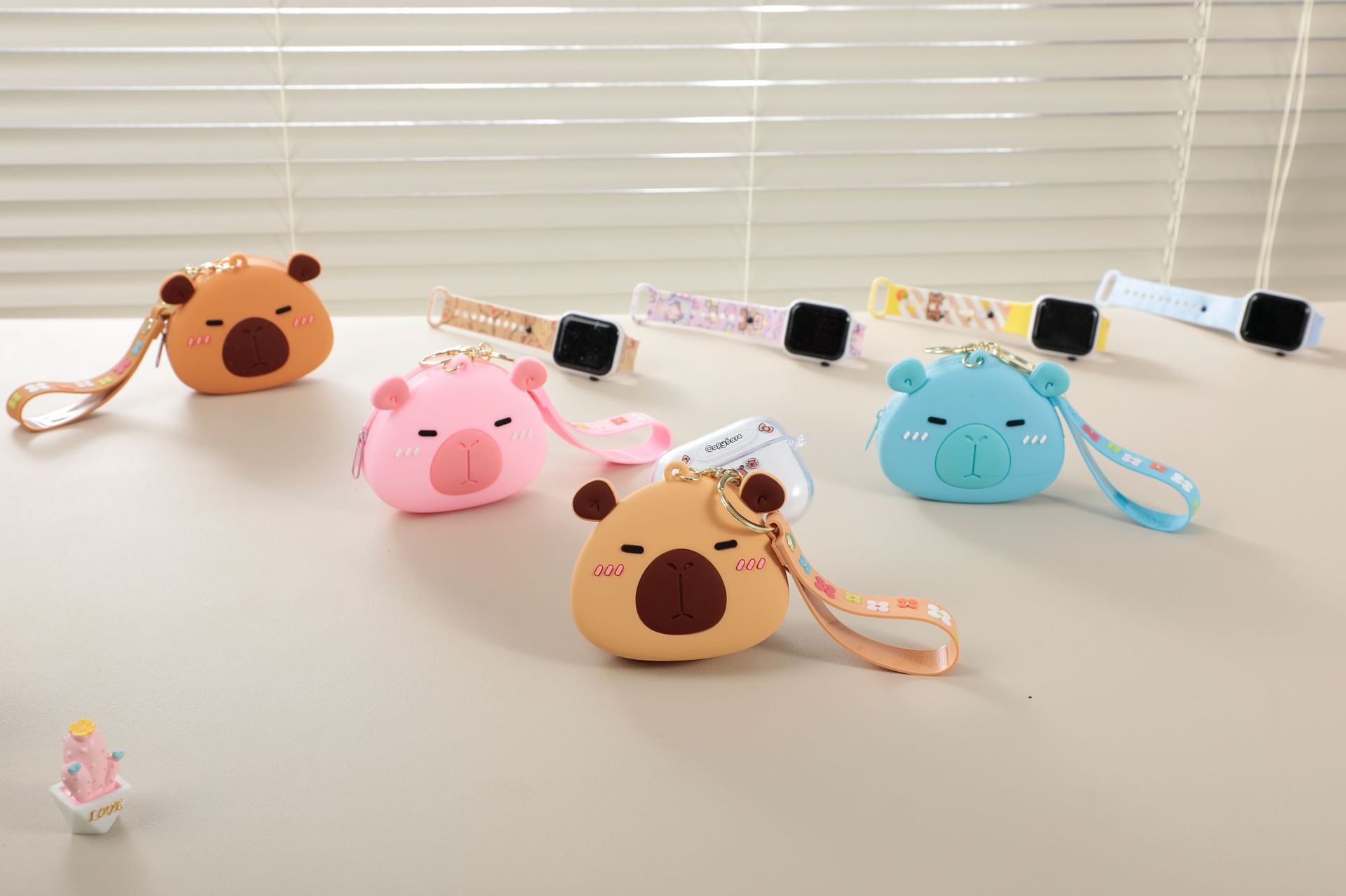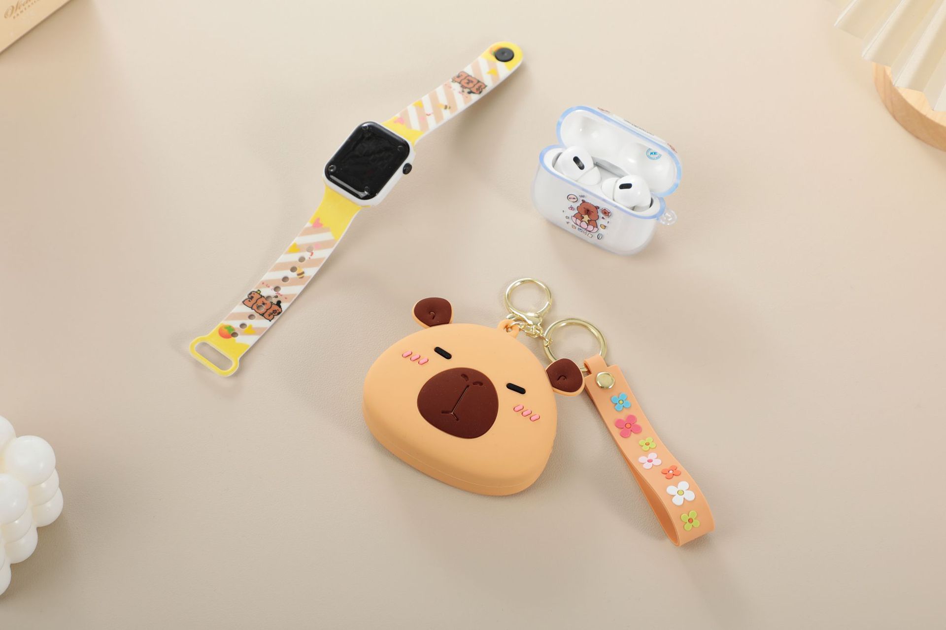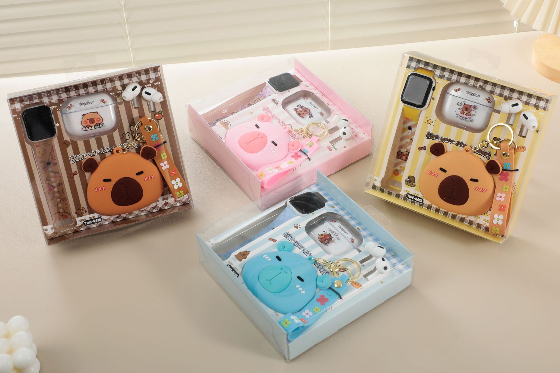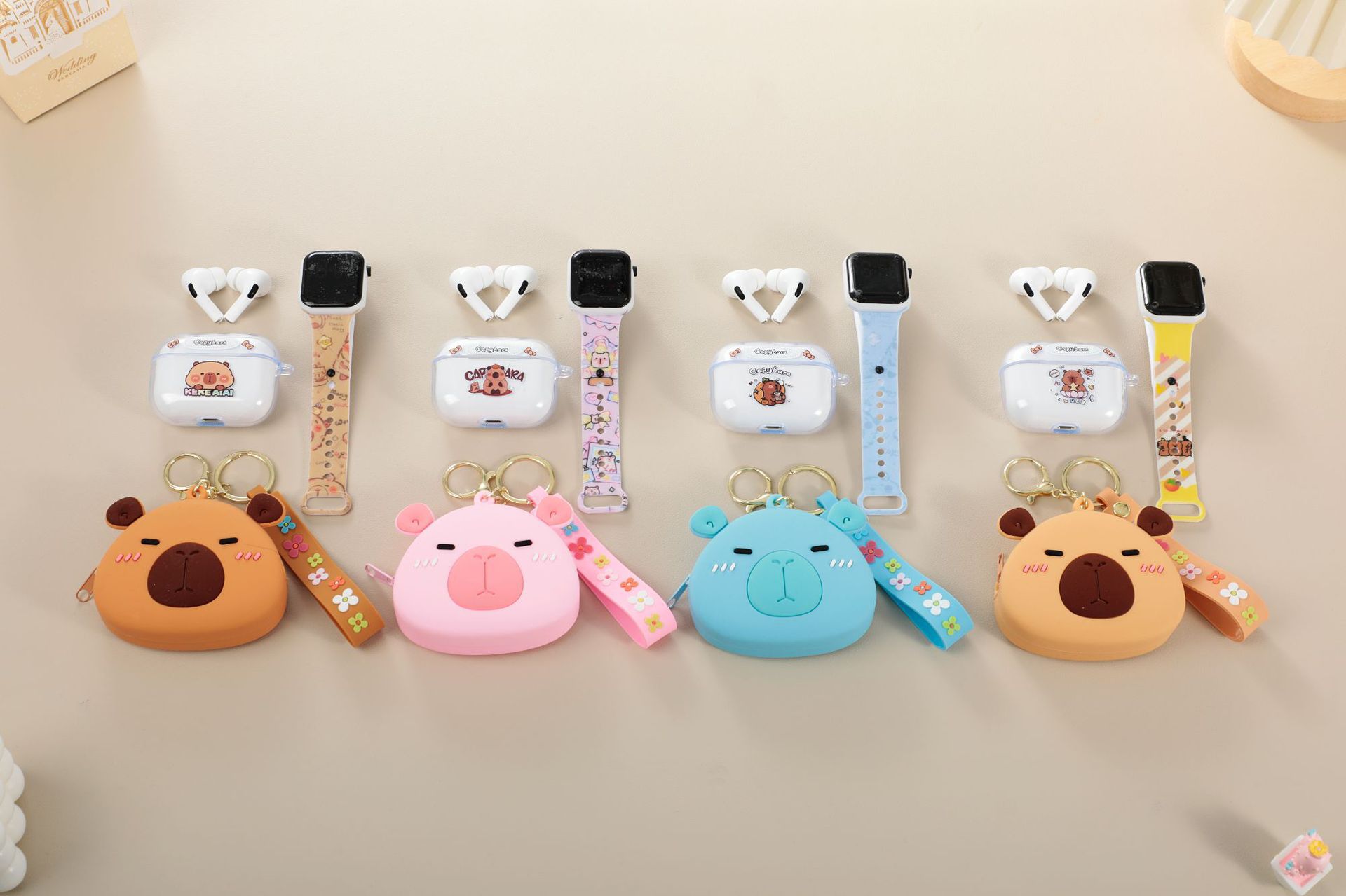 卡皮巴拉胶零钱包套装蓝牙耳机