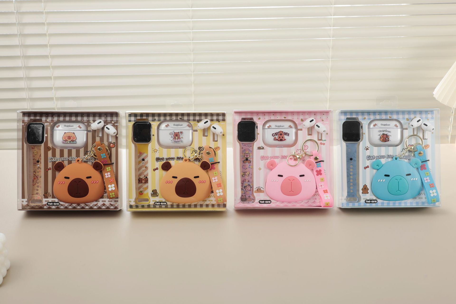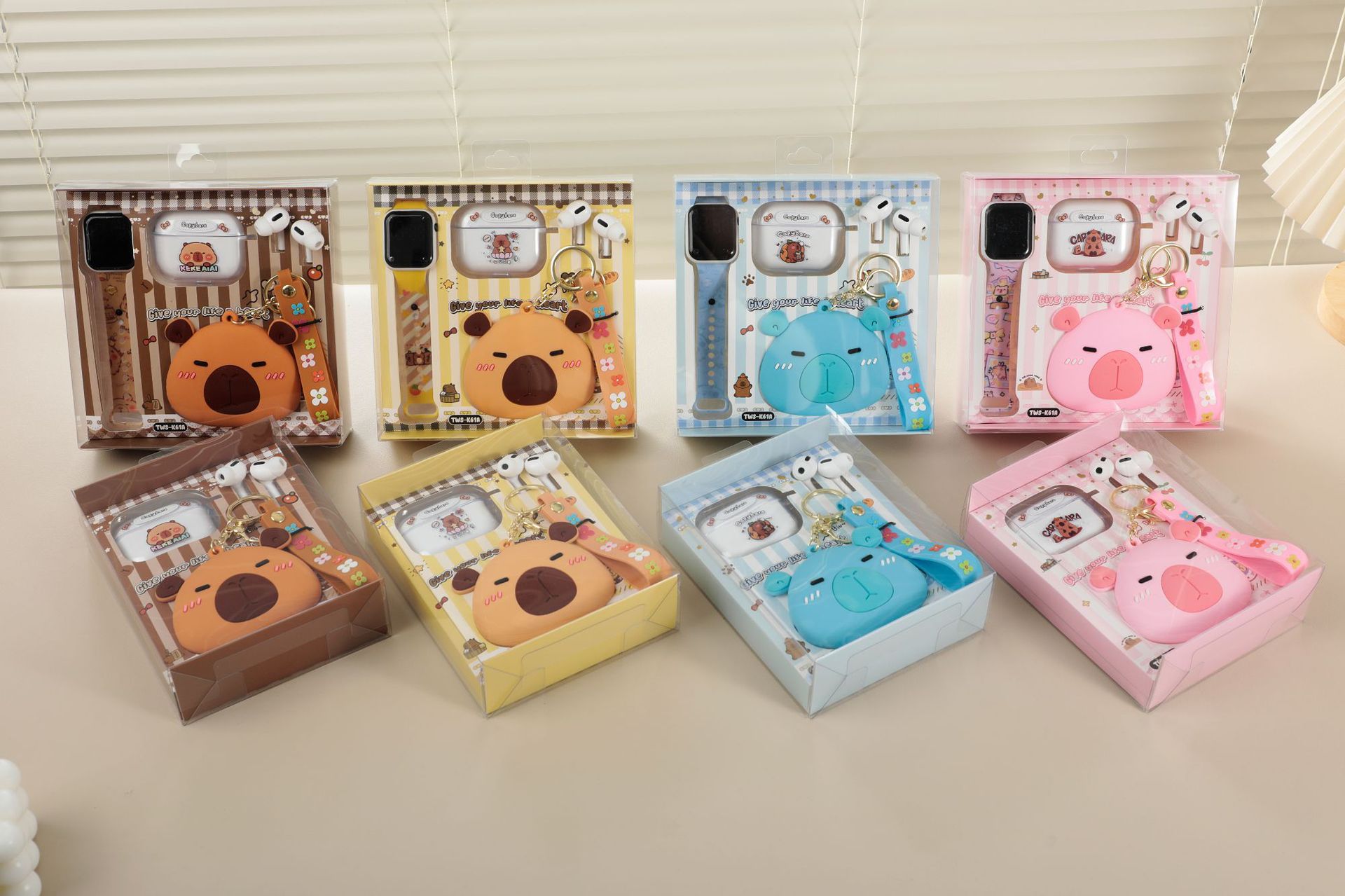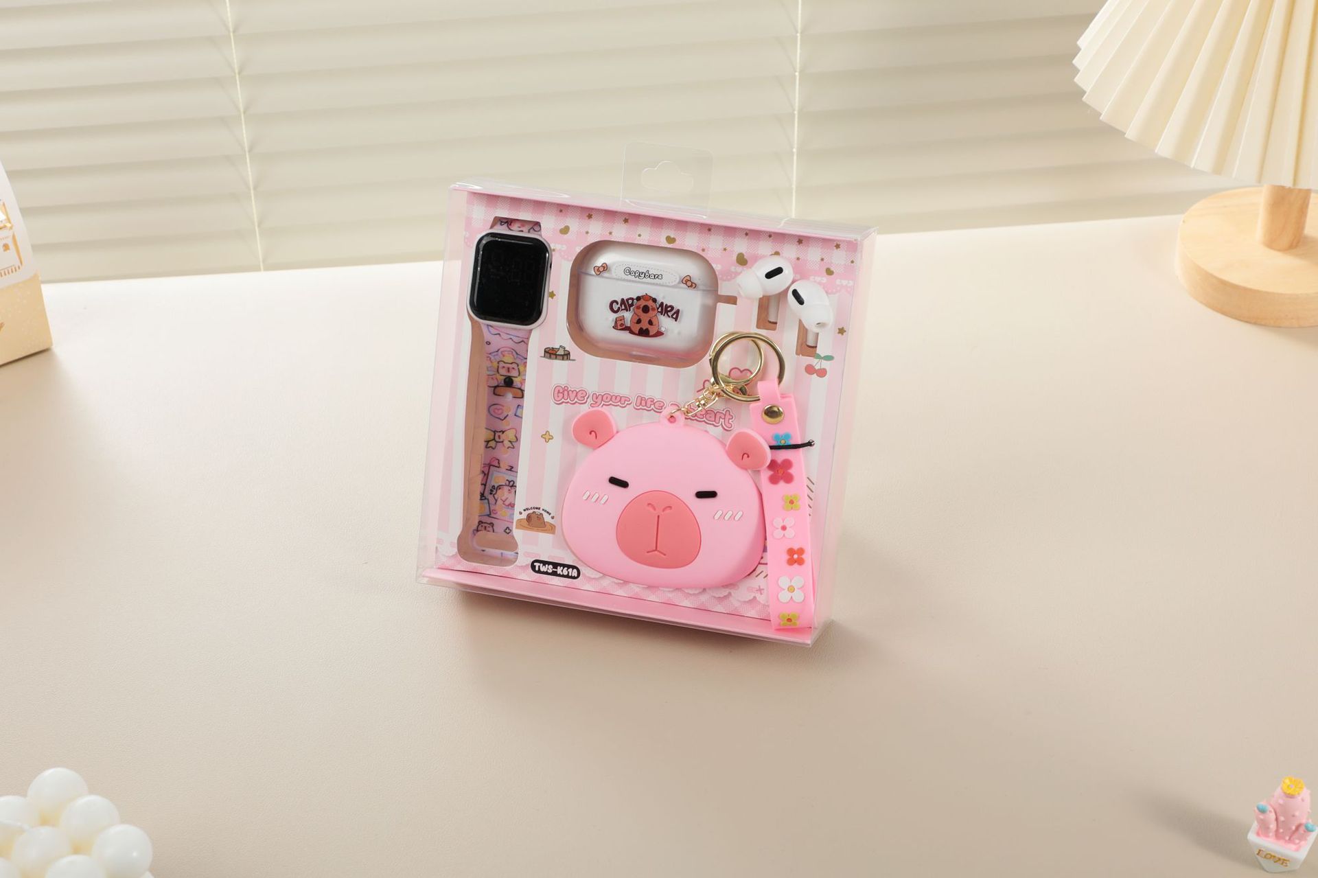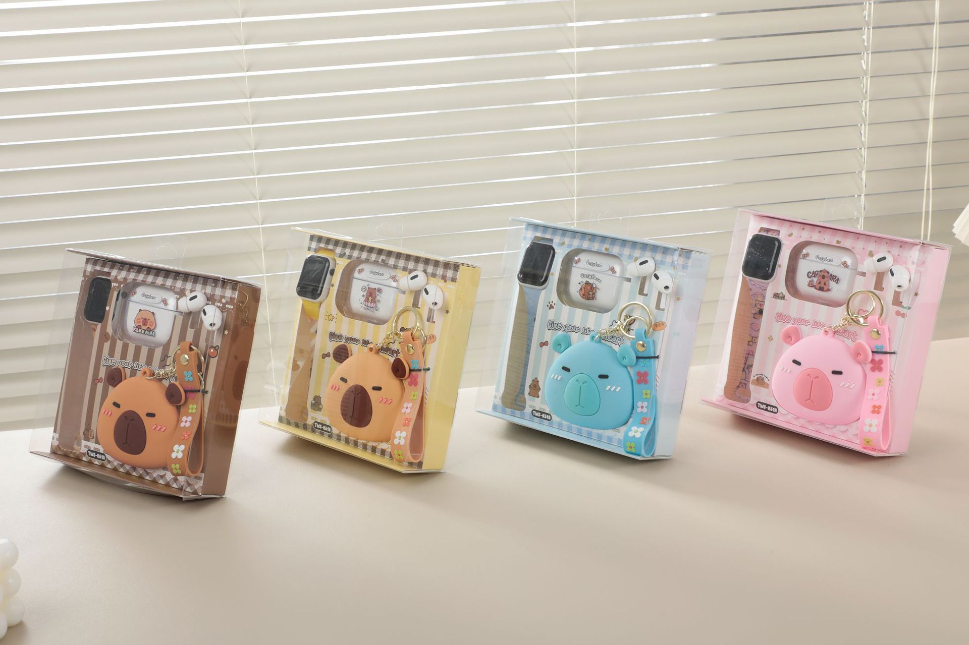 卡皮巴拉胶零钱包套装蓝牙耳机