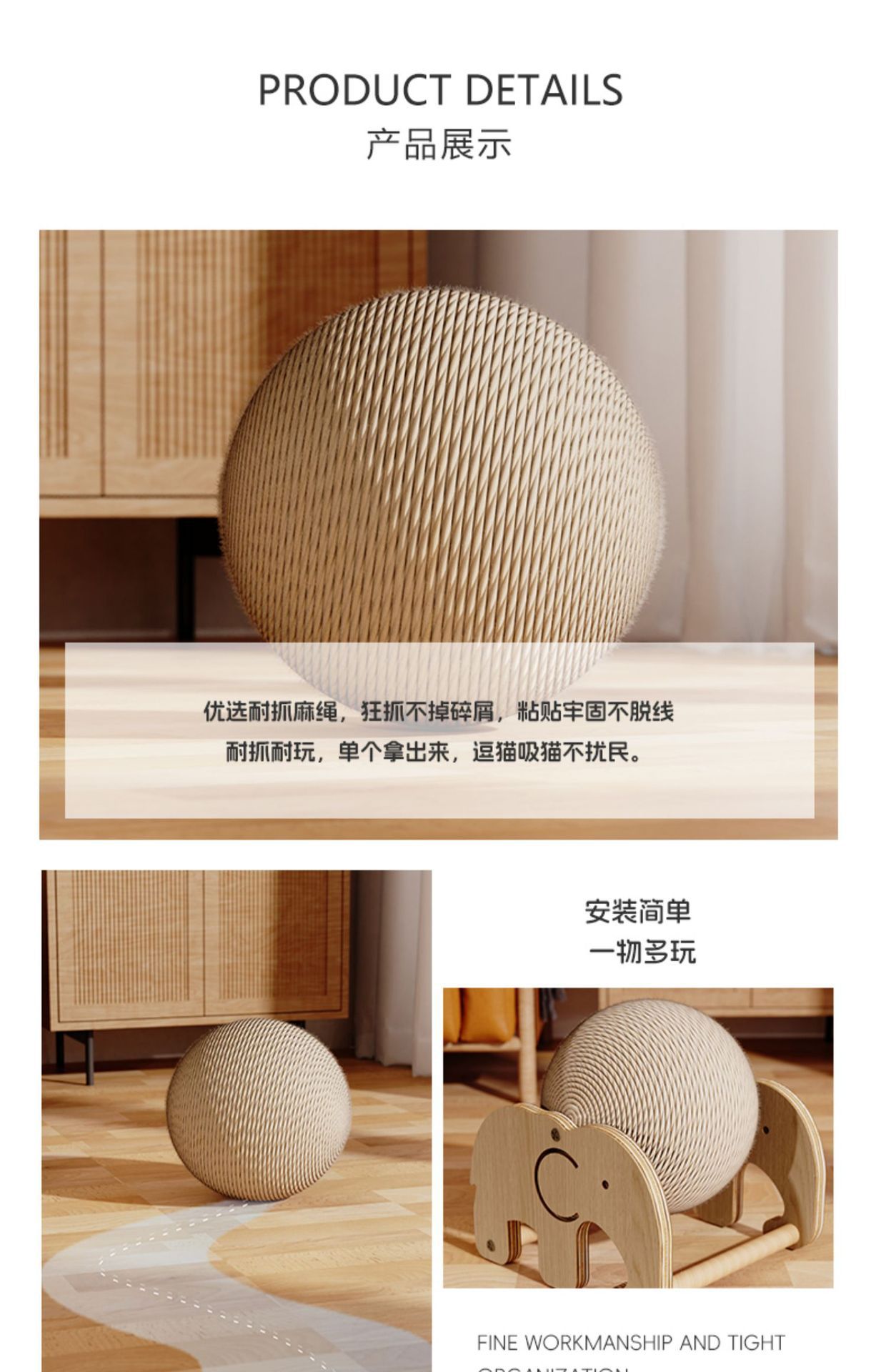 摩天轮剑麻猫抓球滚轮立式猫木抓球小熊大象自嗨解闷猫咪磨爪玩具 投诉