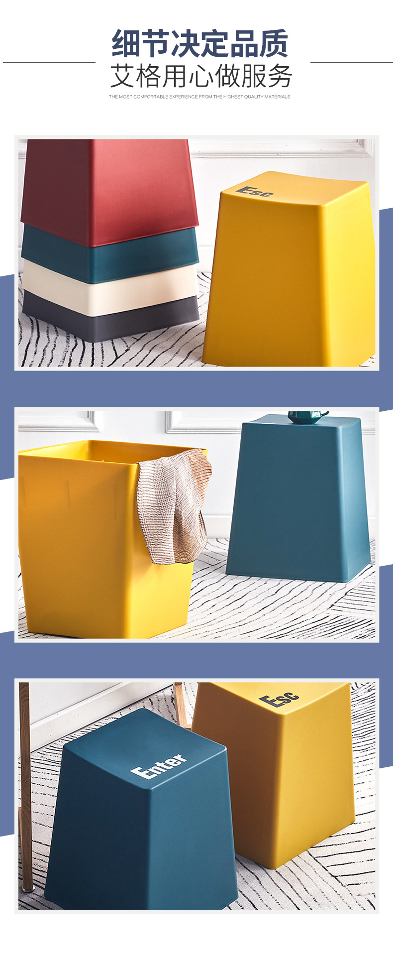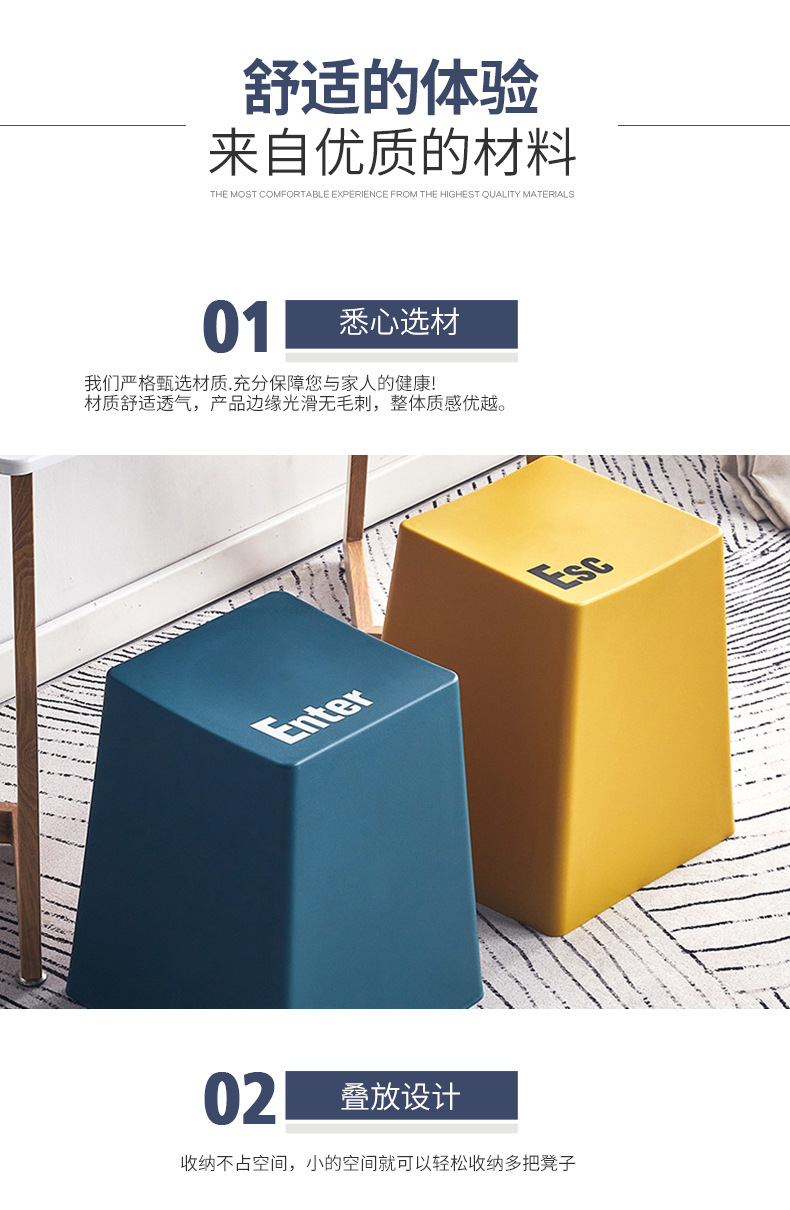 键盘凳塑料凳子彩色加厚创意简约客厅餐桌吃饭休闲凳极简板凳家用 投诉