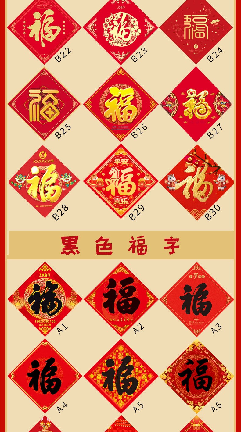 定制蛇年福字门贴春节广告logo免费设计对联定做 福字贴自粘福字 English | 投诉
