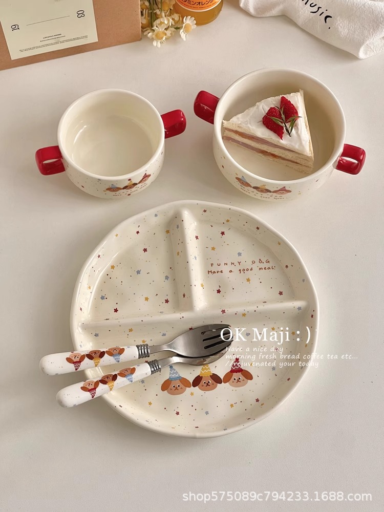 一人食早餐餐具宿舍碗盘儿童分餐盘家用饭碗菜盘减脂分格餐盘套装