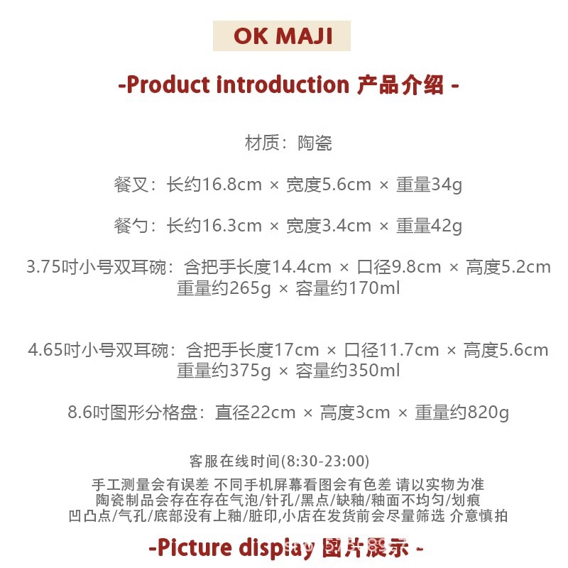 货号: 785067015490 材质: 瓷 是否进口: 否 适用人群: 通用 图案: 卡通 风格: 可爱风 形状: 圆形 微波炉: 可用 加印LOGO: 不可以 适用对象: 通用 表面工艺: 色釉 是否有专利: 否 是否属于礼品: 否 风格类型: 清新萌趣 重量: 0.5 kg/件
