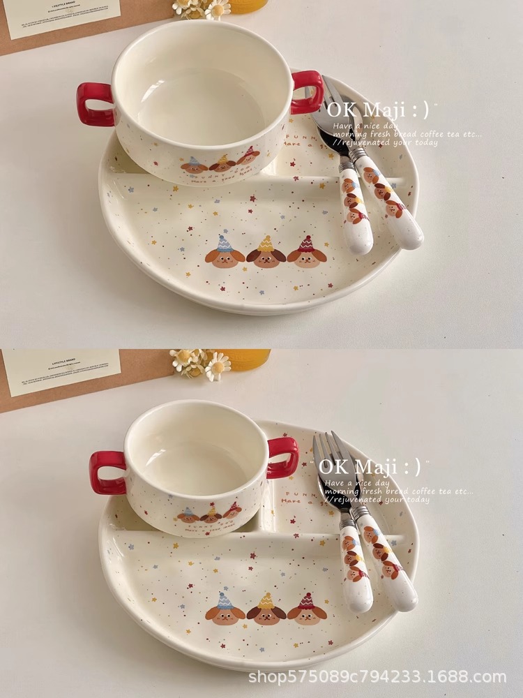一人食早餐餐具宿舍碗盘儿童分餐盘家用饭碗菜盘减脂分格餐盘套装 投诉