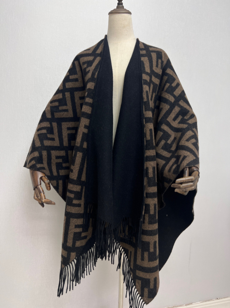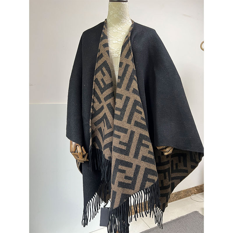 仿羊绒双面提花斗篷舒适冬季保暖休闲单依纯同款流苏女士大披肩