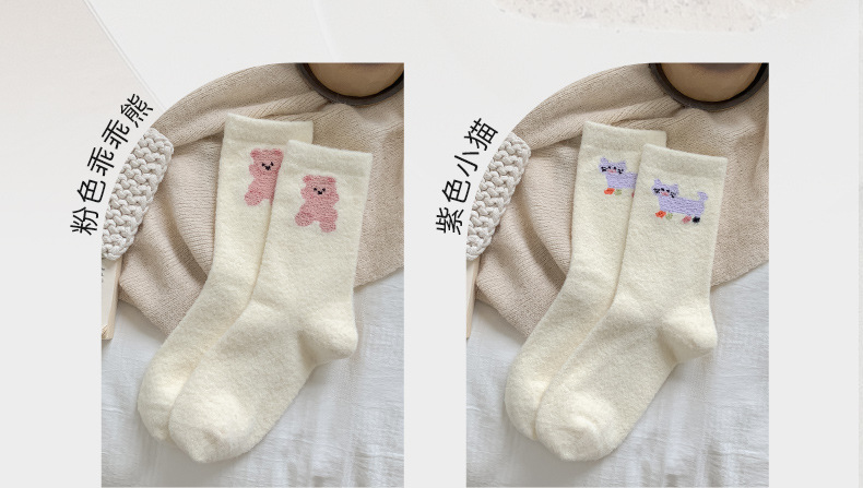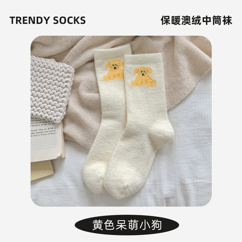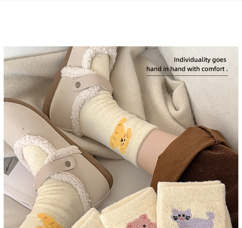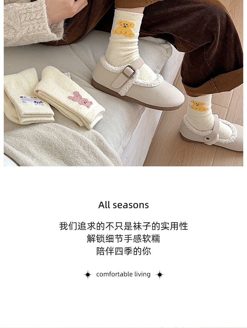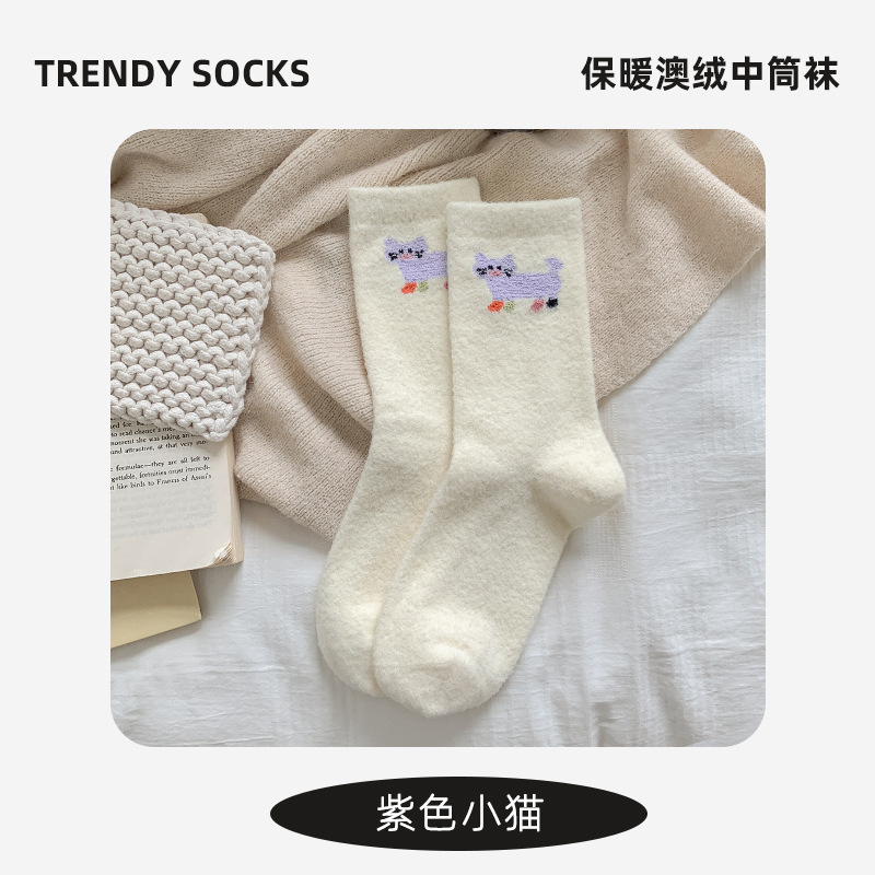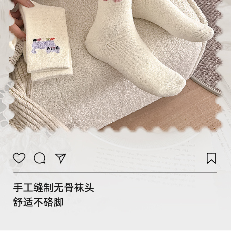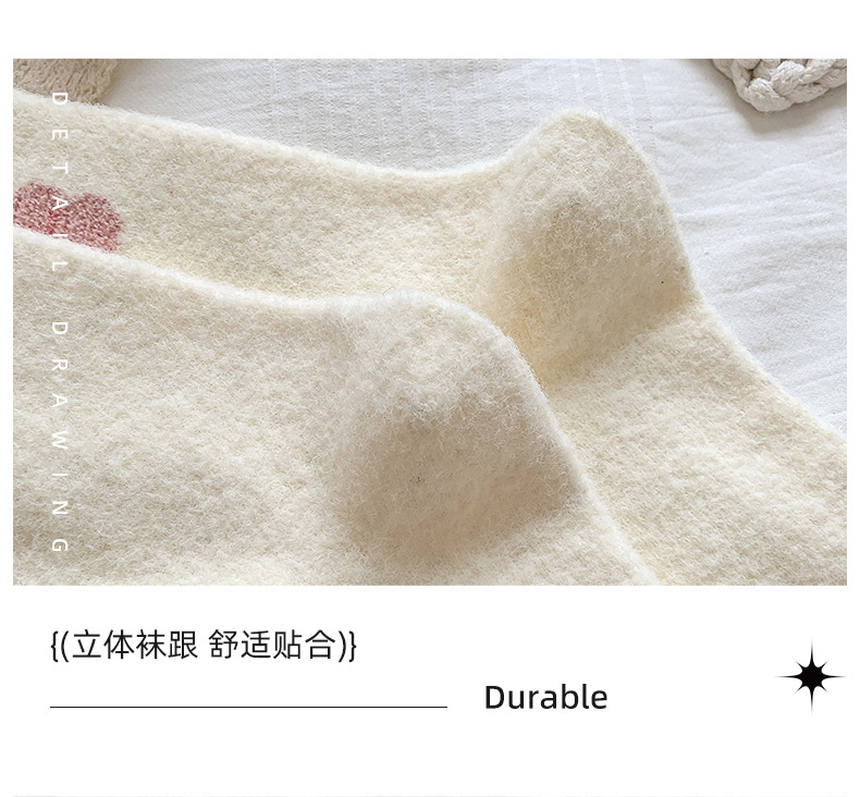 面料名称: 澳绒 无骨缝制: 是:手工无骨缝头 功能: 透气,吸汗,防摩擦 图案: 卡通 包装形式: 袋装 适用性别: 女 适用年龄段: 青年(18-40周岁) 筒高: 中筒 针数: 176N 上市时间: 2025年冬季 适合季节: 冬季,秋季 产品类别: 普通休闲袜 产地: 诸暨 是否跨境出口专供货源: 是 货号: W25180 品牌: jsuay/迦秀 尺码: 均码 是否进口: 否 成分及含量: 澳绒 风格: 简约风 重量: 0.5 kg/双