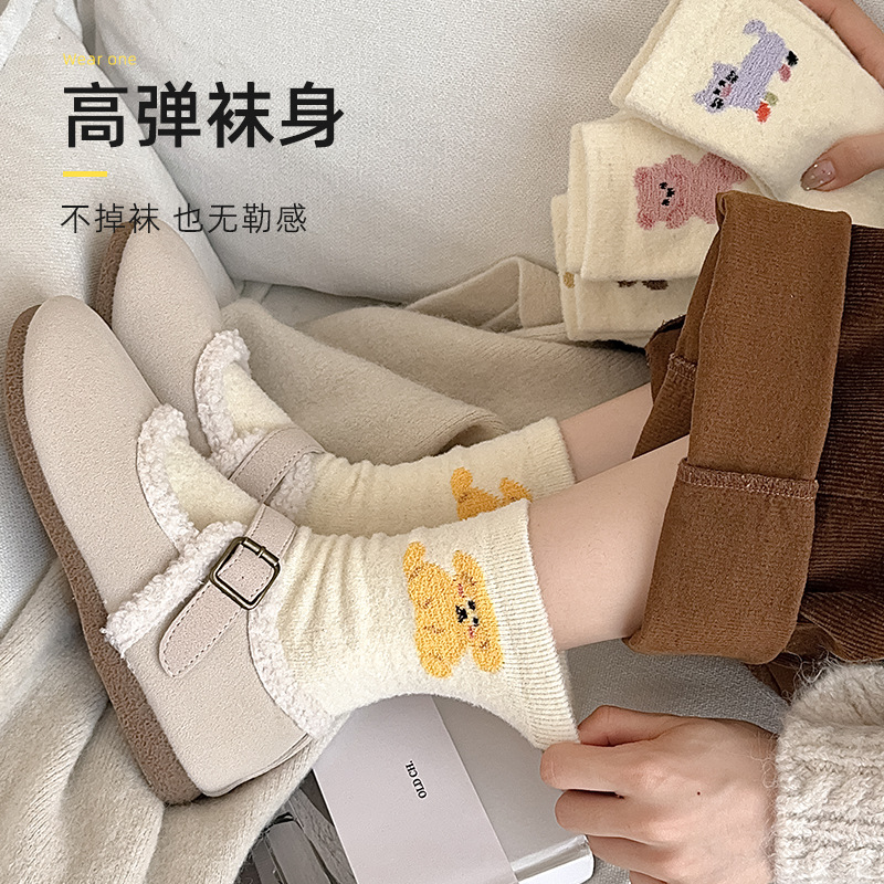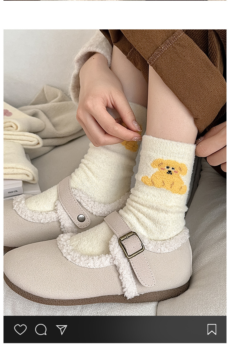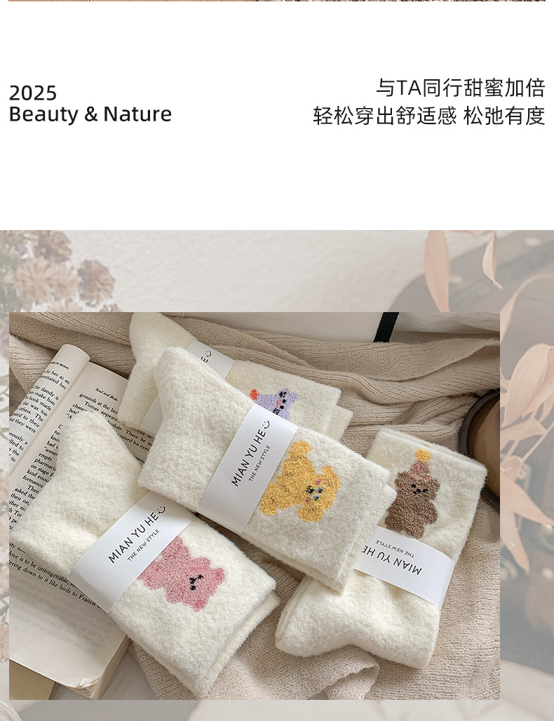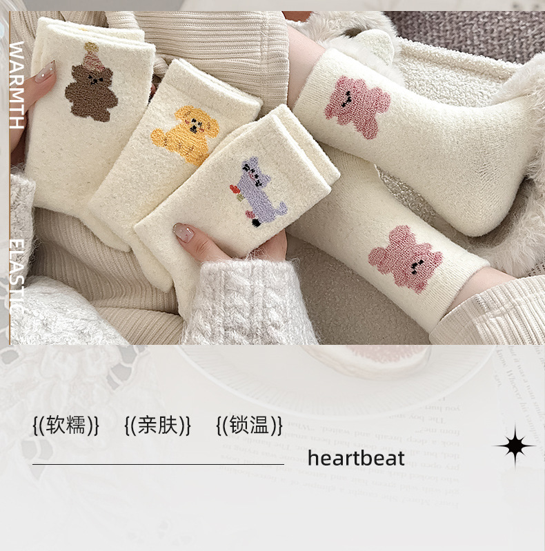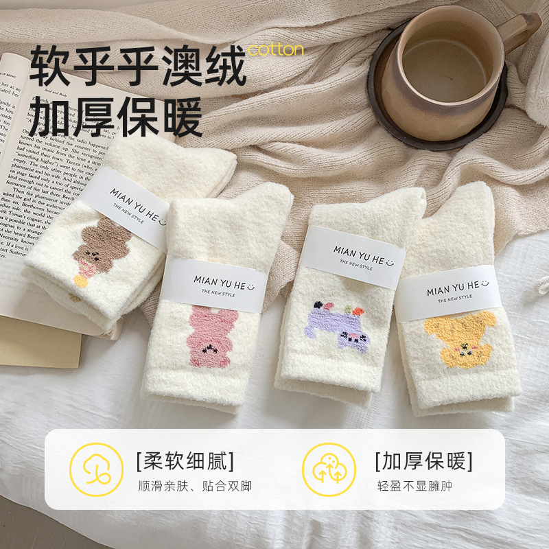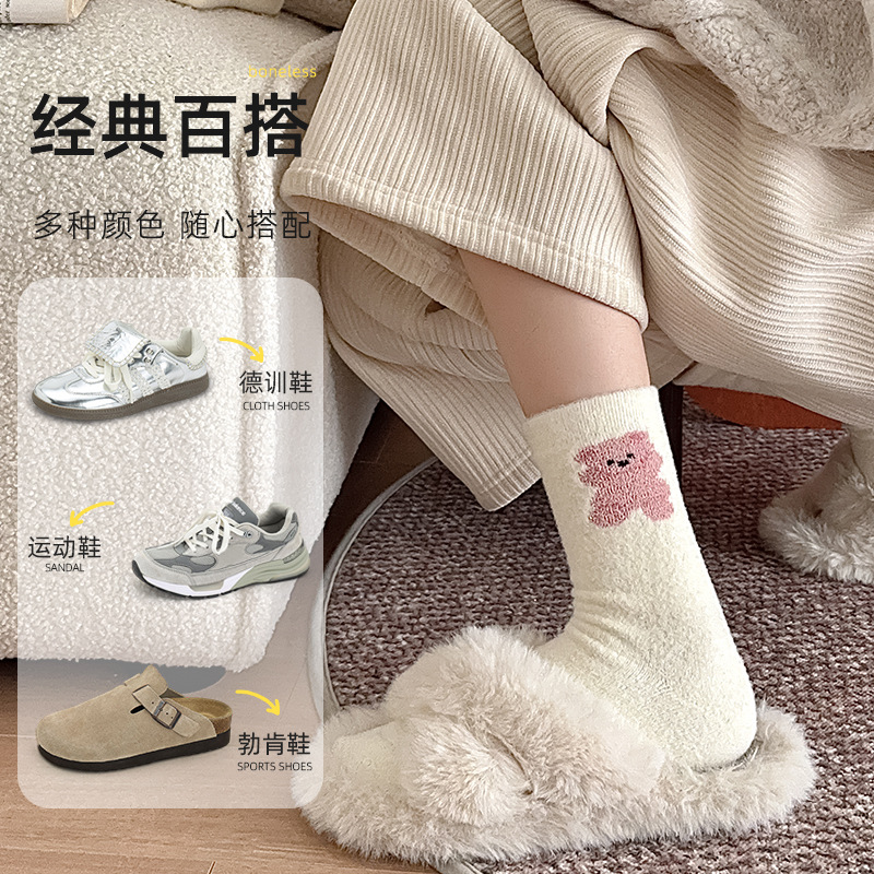面料名称: 澳绒 无骨缝制: 是:手工无骨缝头 功能: 透气,吸汗,防摩擦 图案: 卡通 包装形式: 袋装 适用性别: 女 适用年龄段: 青年(18-40周岁) 筒高: 中筒 针数: 176N 上市时间: 2025年冬季 适合季节: 冬季,秋季 产品类别: 普通休闲袜 产地: 诸暨 是否跨境出口专供货源: 是 货号: W25180 品牌: jsuay/迦秀 尺码: 均码 是否进口: 否 成分及含量: 澳绒 风格: 简约风 重量: 0.5 kg/双