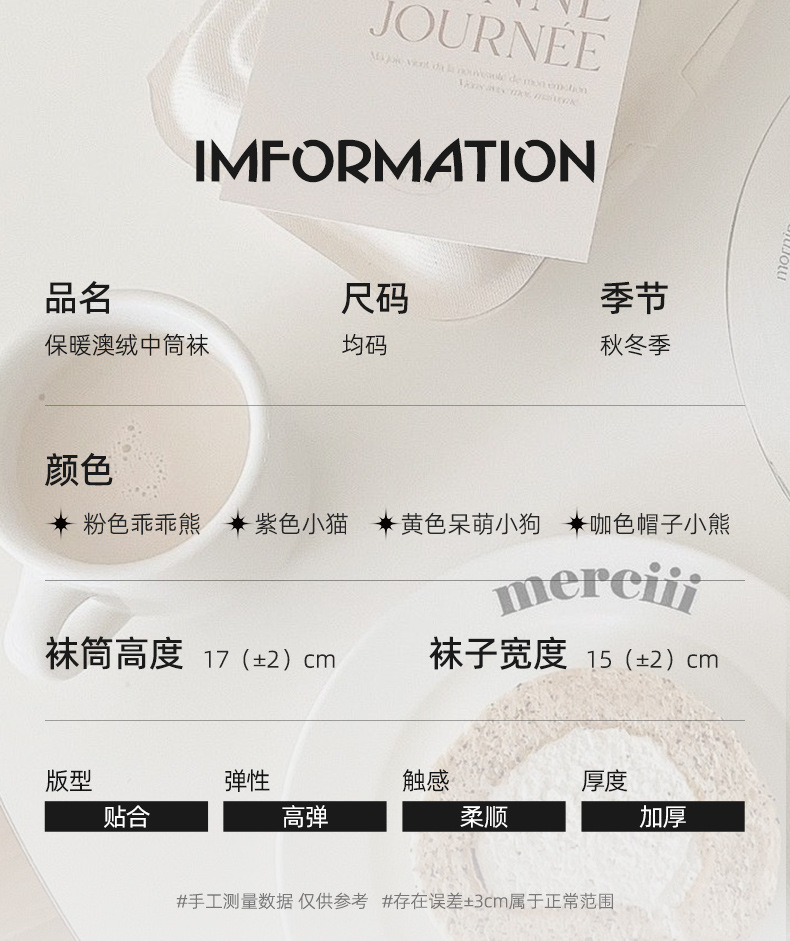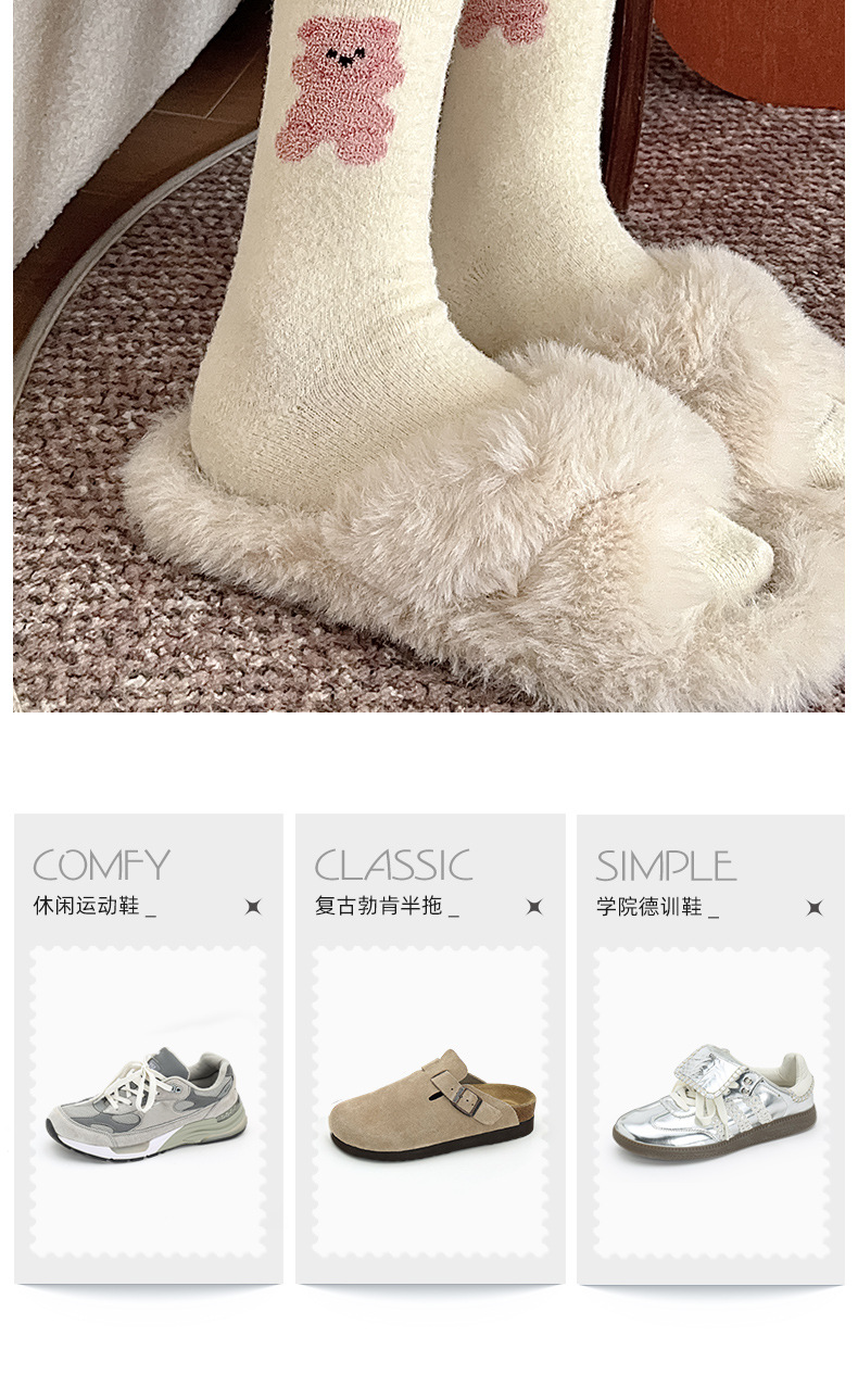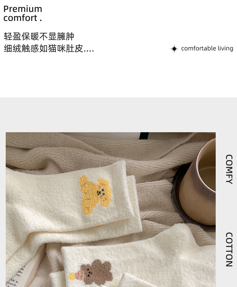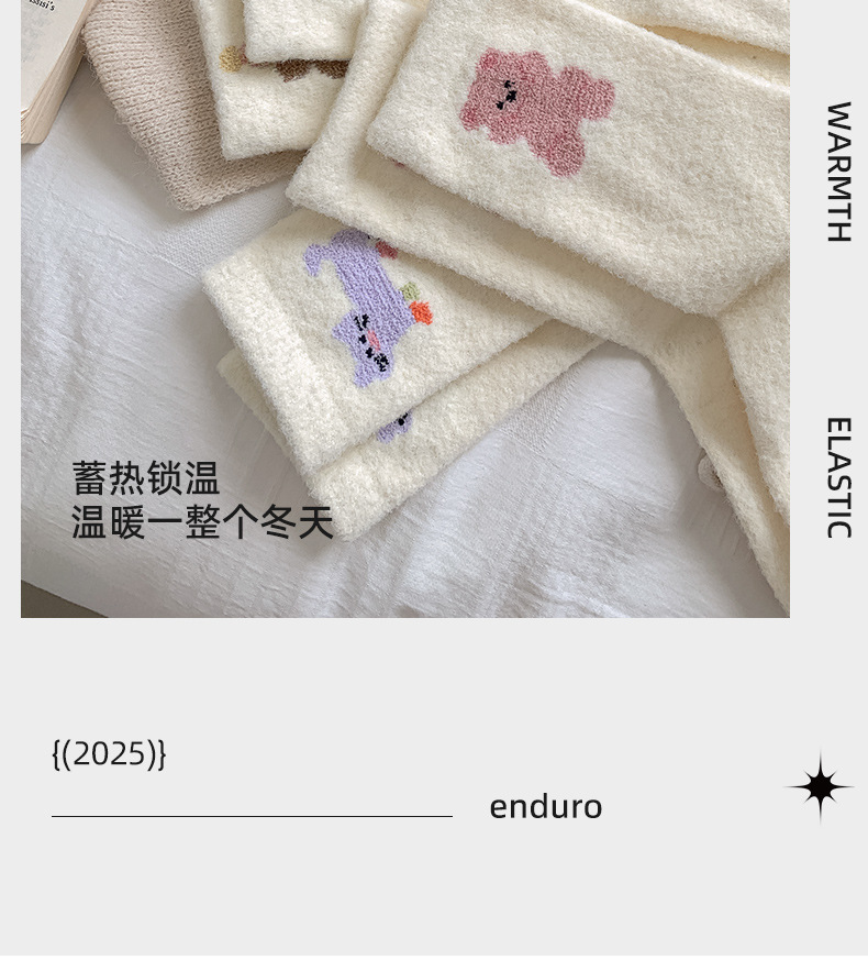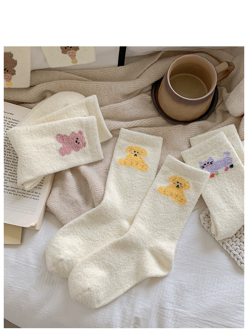 面料名称: 澳绒 无骨缝制: 是:手工无骨缝头 功能: 透气,吸汗,防摩擦 图案: 卡通 包装形式: 袋装 适用性别: 女 适用年龄段: 青年(18-40周岁) 筒高: 中筒 针数: 176N 上市时间: 2025年冬季 适合季节: 冬季,秋季 产品类别: 普通休闲袜 产地: 诸暨 是否跨境出口专供货源: 是 货号: W25180 品牌: jsuay/迦秀 尺码: 均码 是否进口: 否 成分及含量: 澳绒 风格: 简约风 重量: 0.5 kg/双