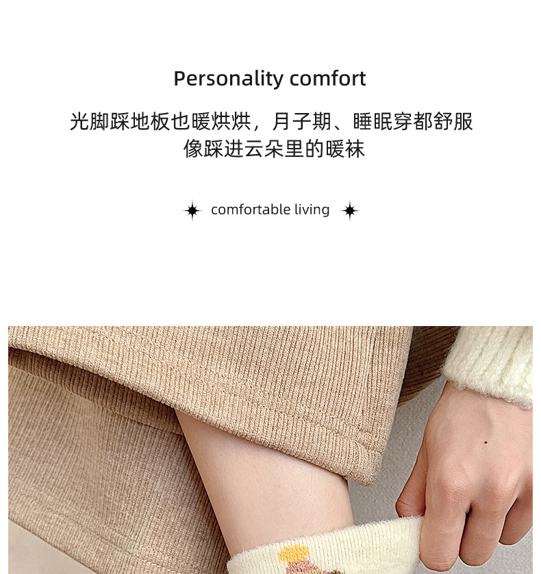 澳绒袜子女无骨中筒袜冬季加绒加厚保暖月子袜毛茸家居睡眠地板袜 投诉