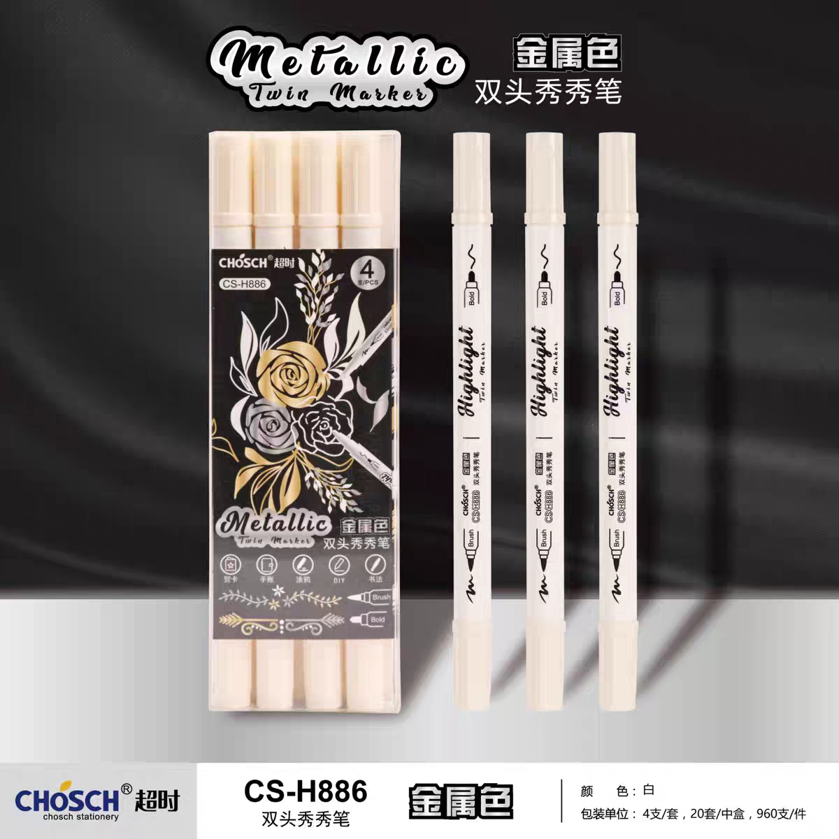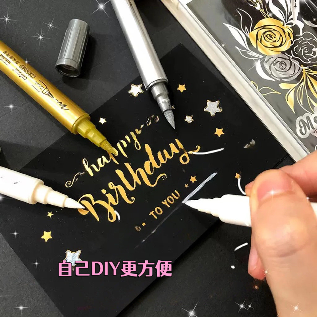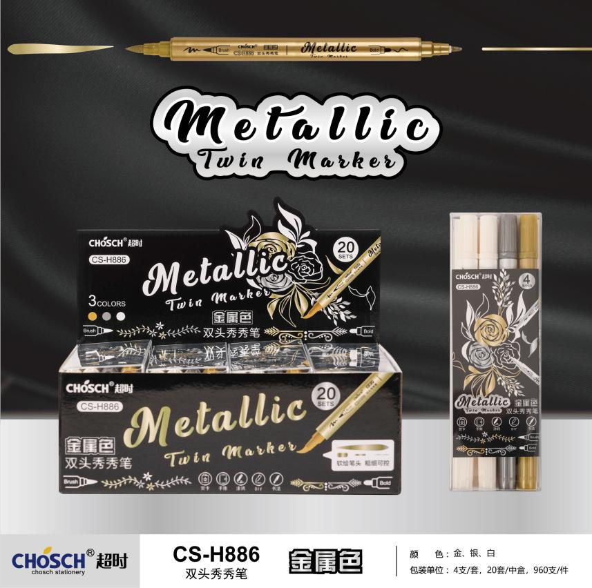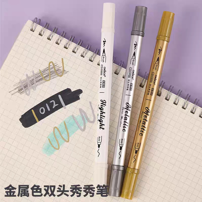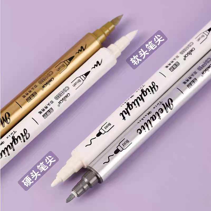 H886金属色双头秀秀笔黑卡软头学生手账标记DIY相册贺卡啫喱荧光