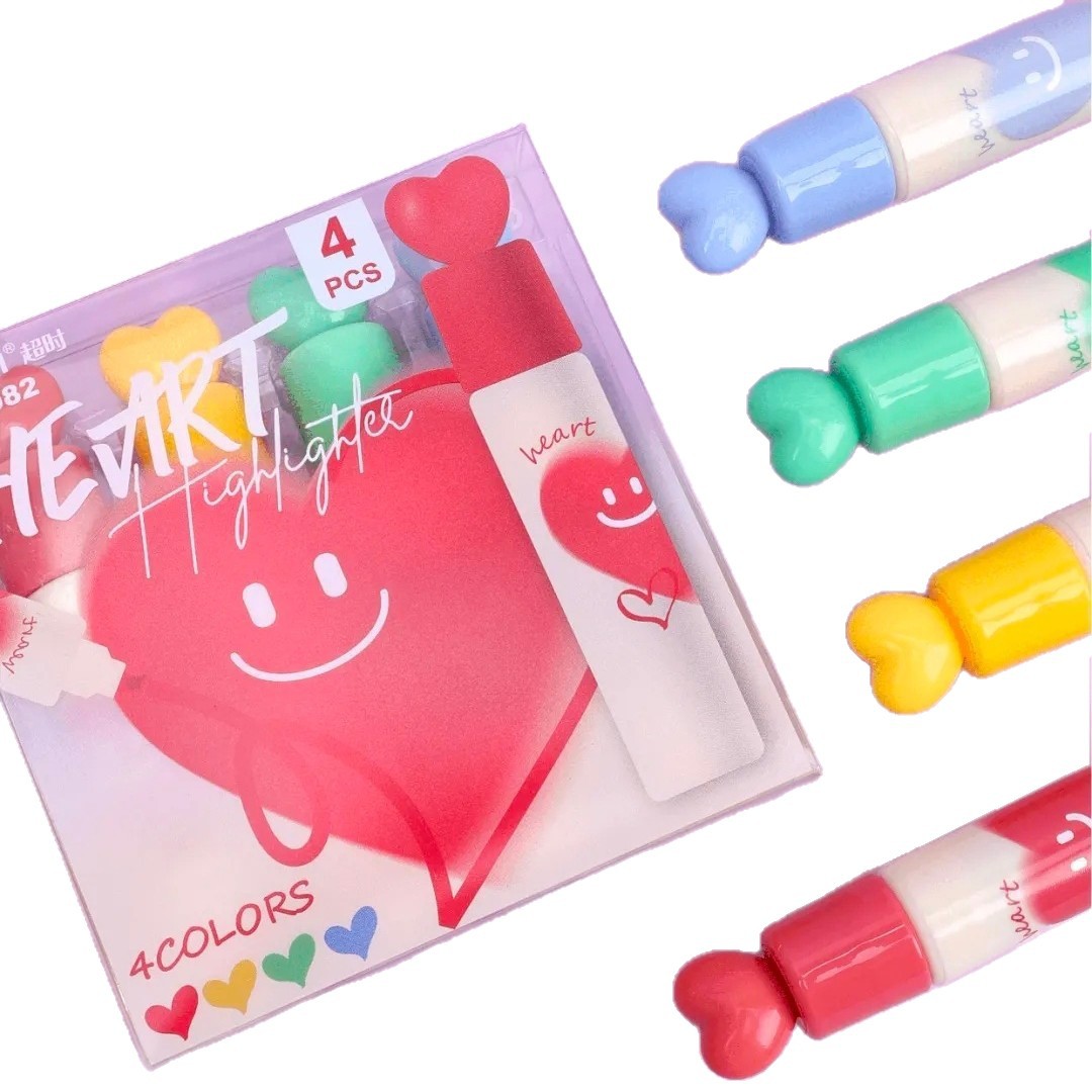 H982爱心荧光笔立体爱心造型涂色顺滑清晰不晕染记号笔荧光笔展架