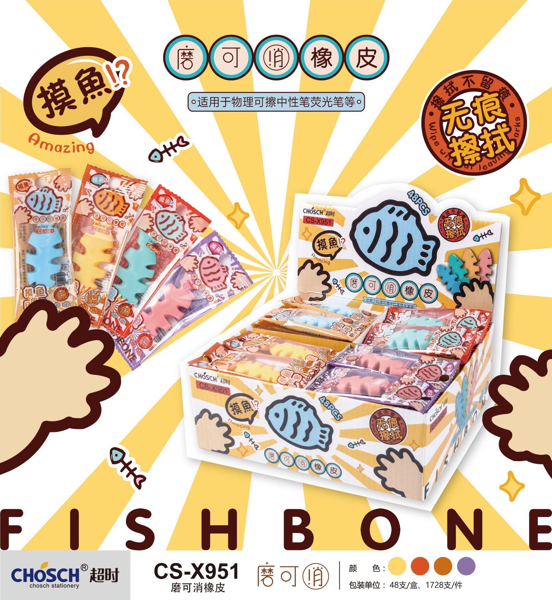 品牌: 超时 货号: CS-X951 型号: CS-X951 材质: TPE 规格: 盒装 造型: 鱼骨 用途: 橡皮 加印LOGO: 可以 加工定制: 是 净重: 10 尺寸: 见详情页 是否进口: 否 是否跨境出口专供货源: 否 是否属于礼品: 否 是否专利货源: 否 是否IP授权: 否 是否电动: 否 重量: 0.008 kg/个