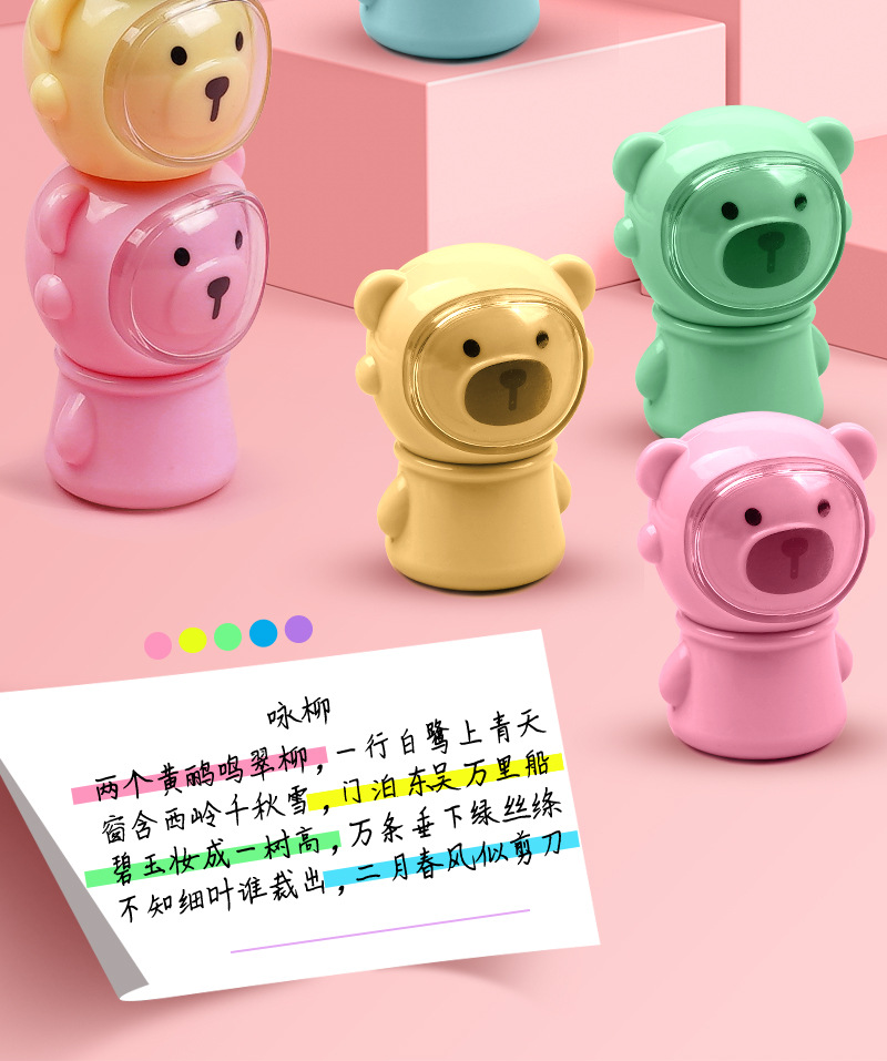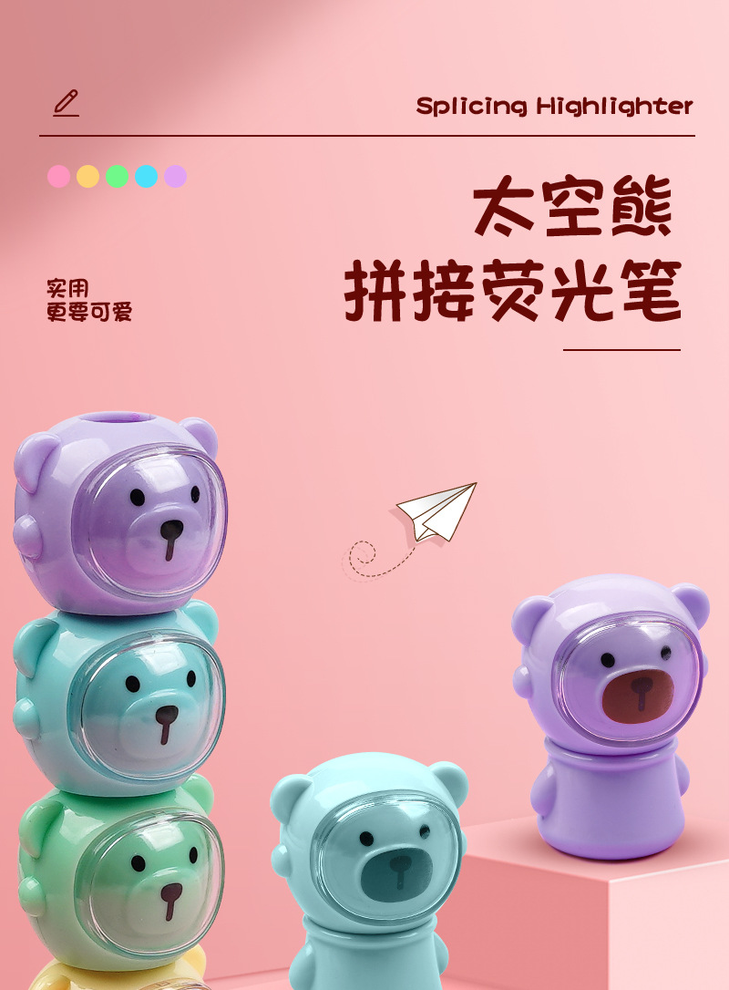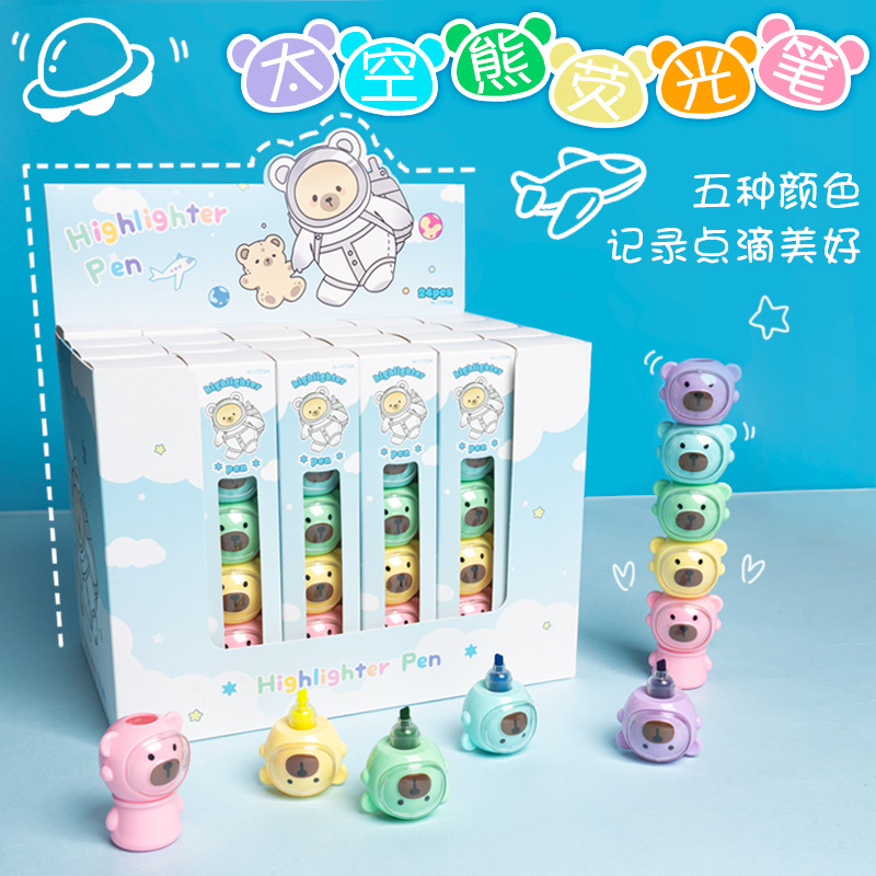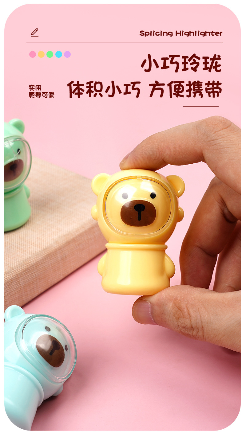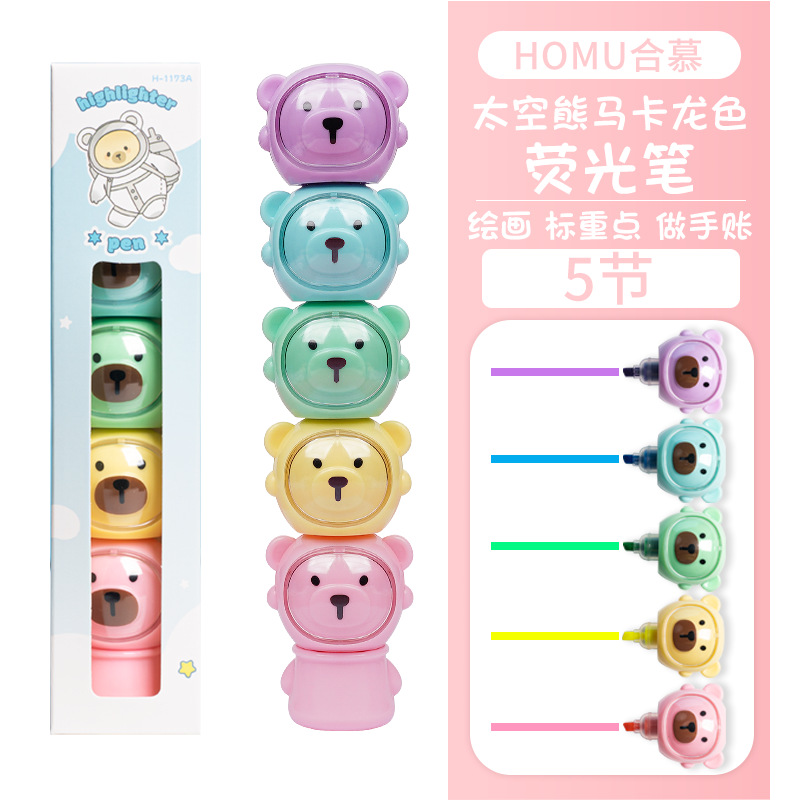 合慕H-1173A卡通太空熊荧光笔 现货批发可拼接学生做笔记手账彩笔 English | 投诉